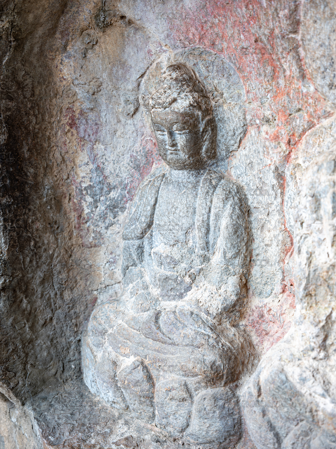 河南洛阳龙门石窟唐代摩崖三佛龛三世佛石刻