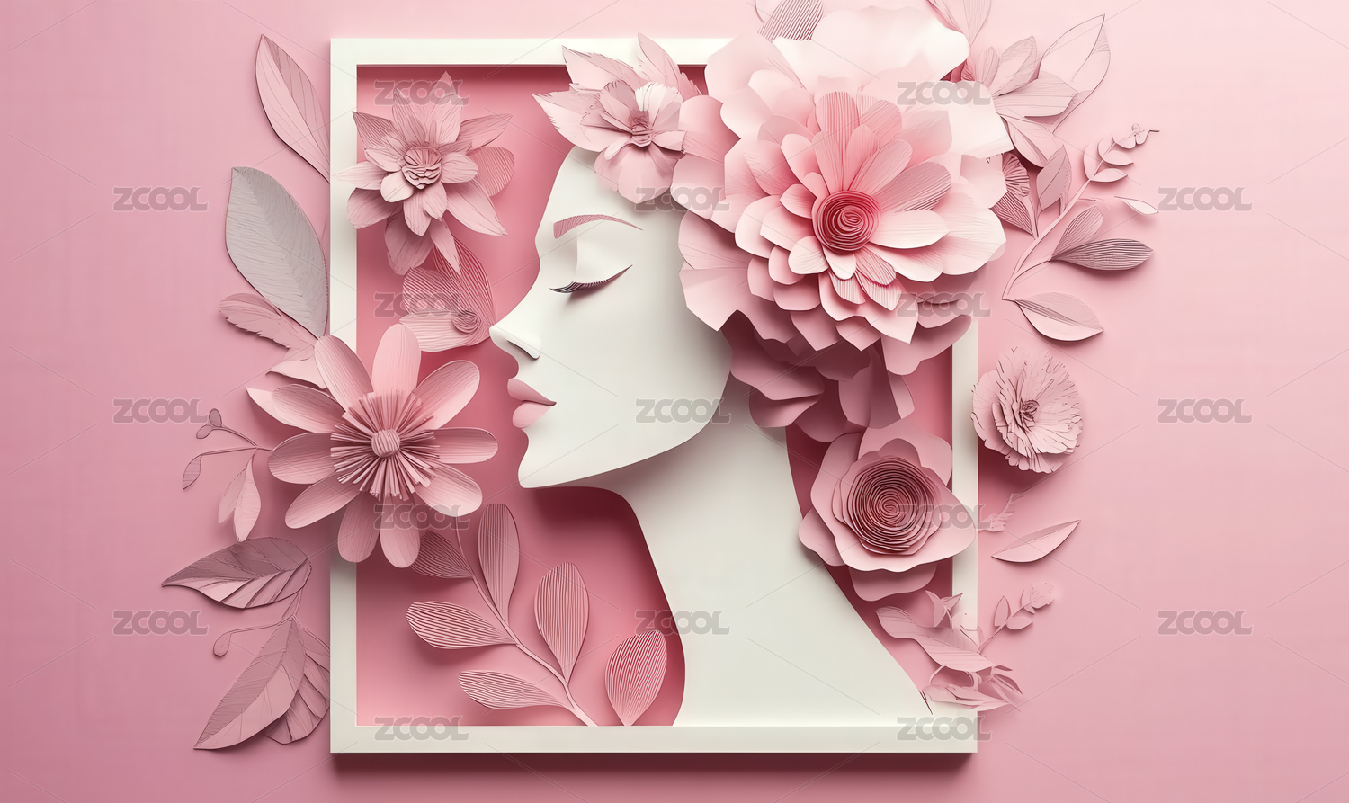 妇女节女性妇女剪纸风格插画,抽象的女性剪