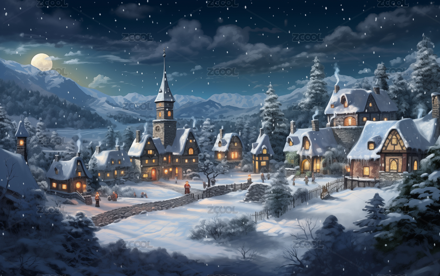 月夜童话村庄梦幻唯美