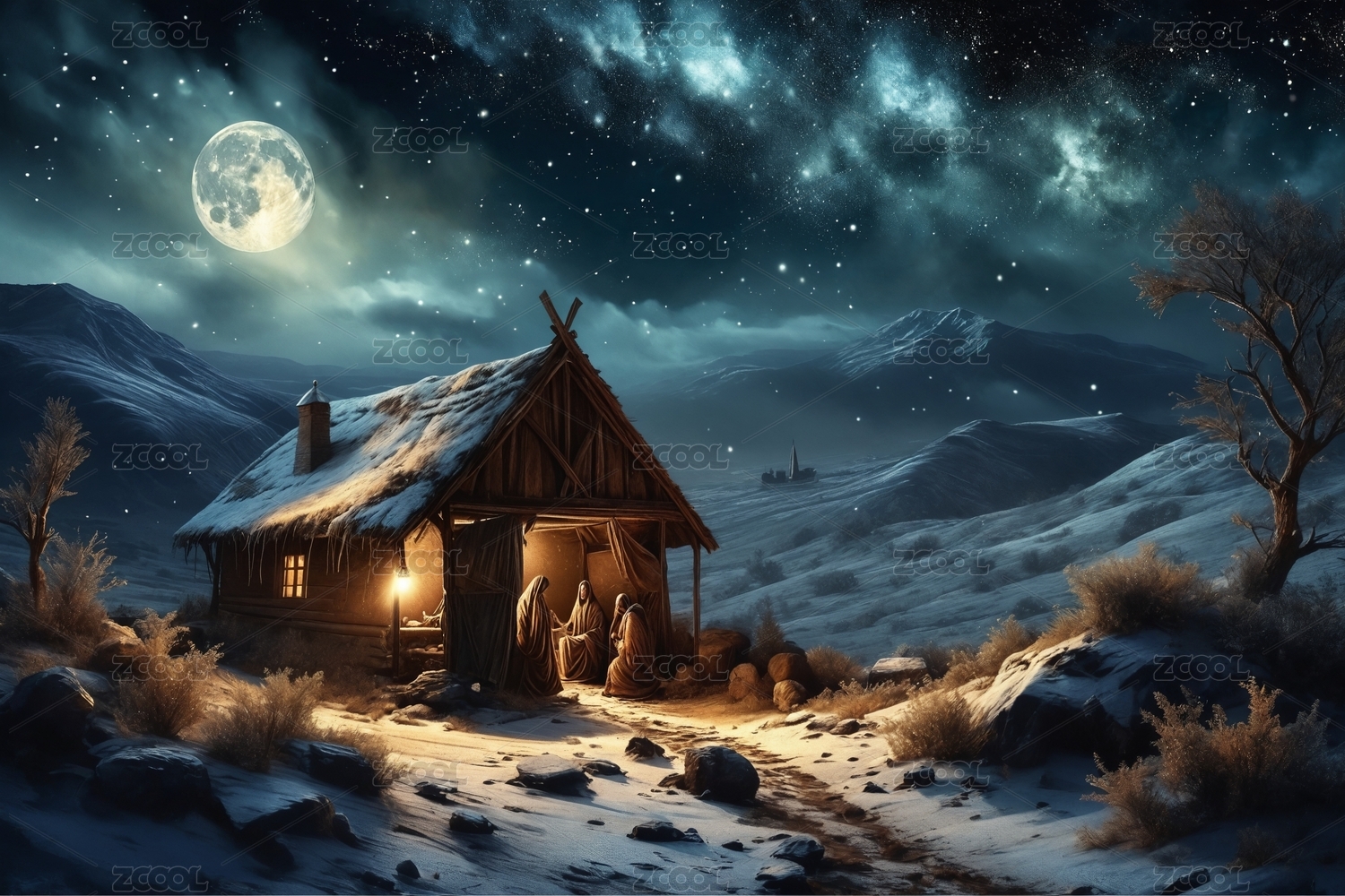 月夜下的温馨田园小屋