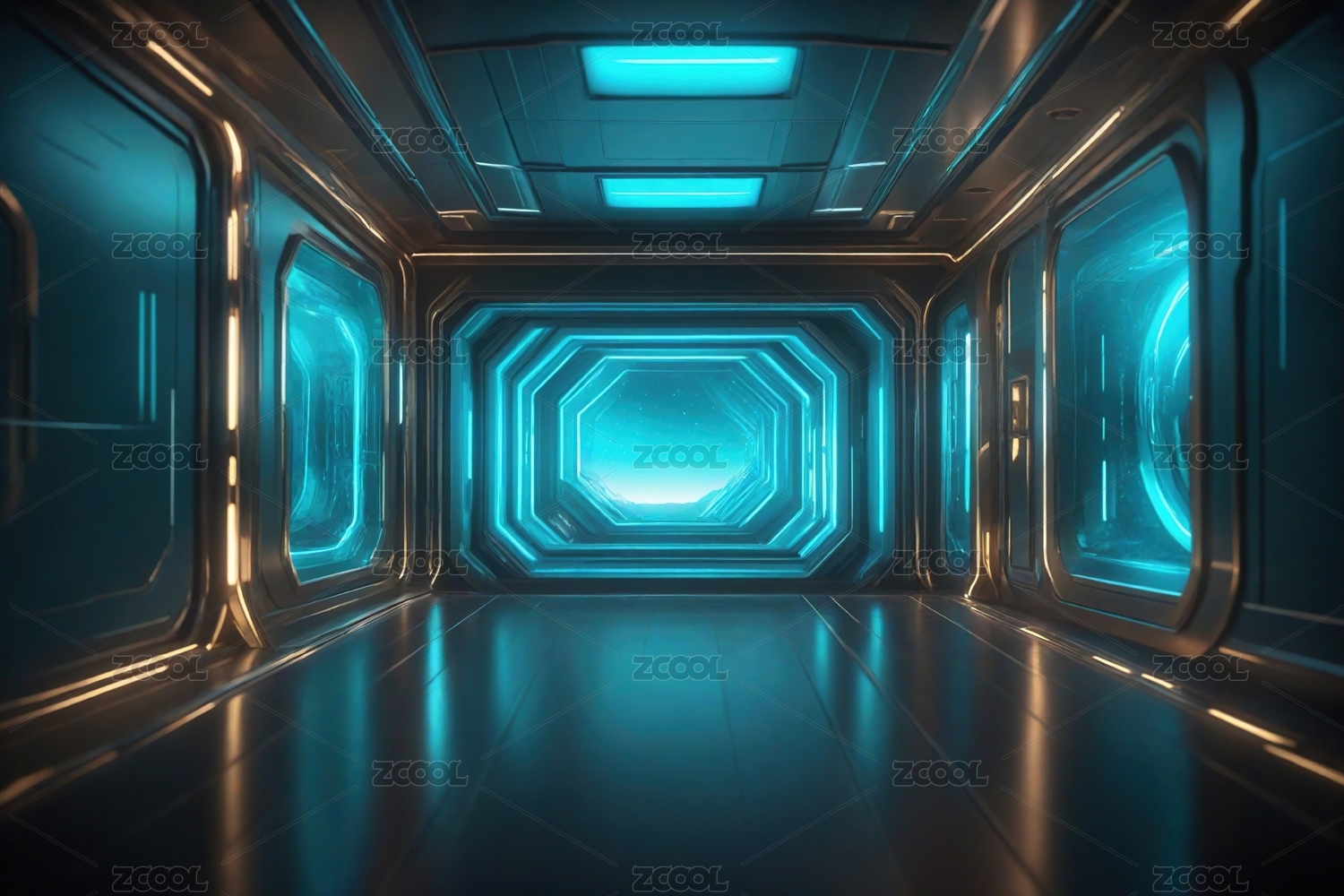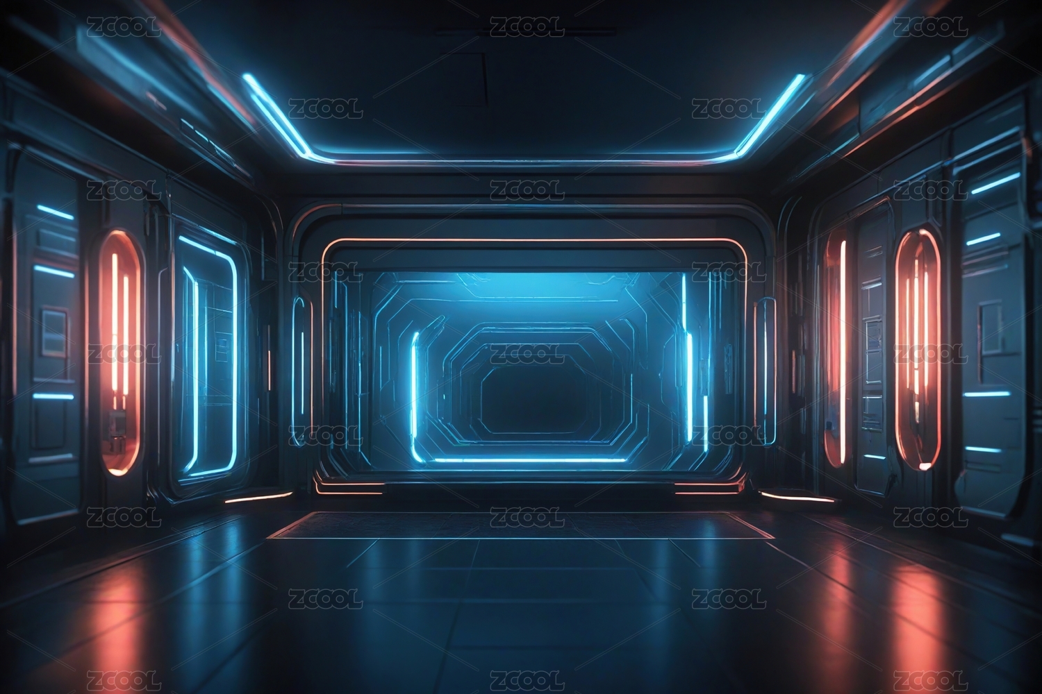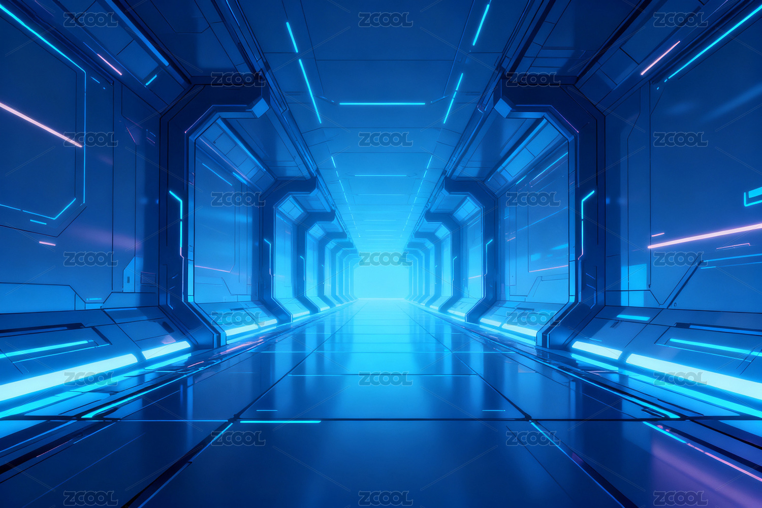 蓝色科技走廊未来感十足