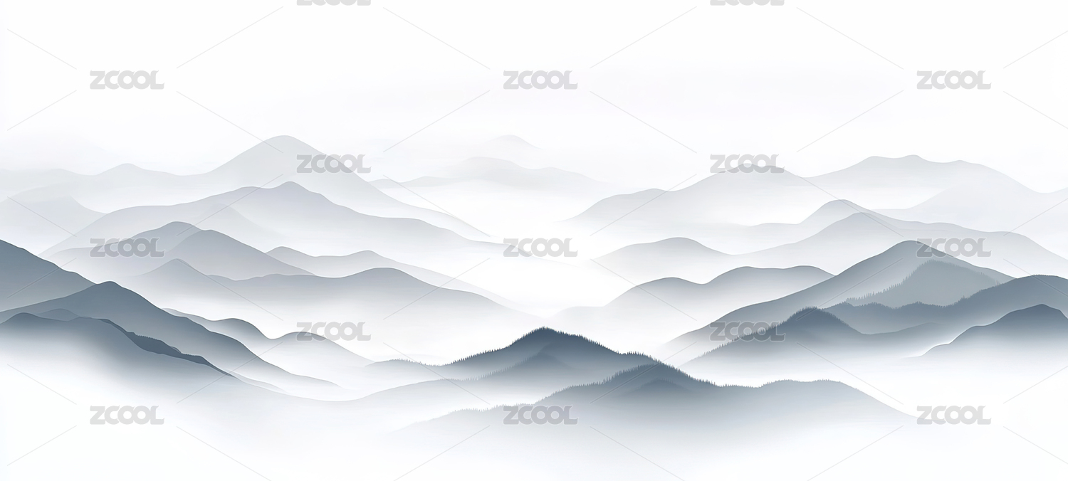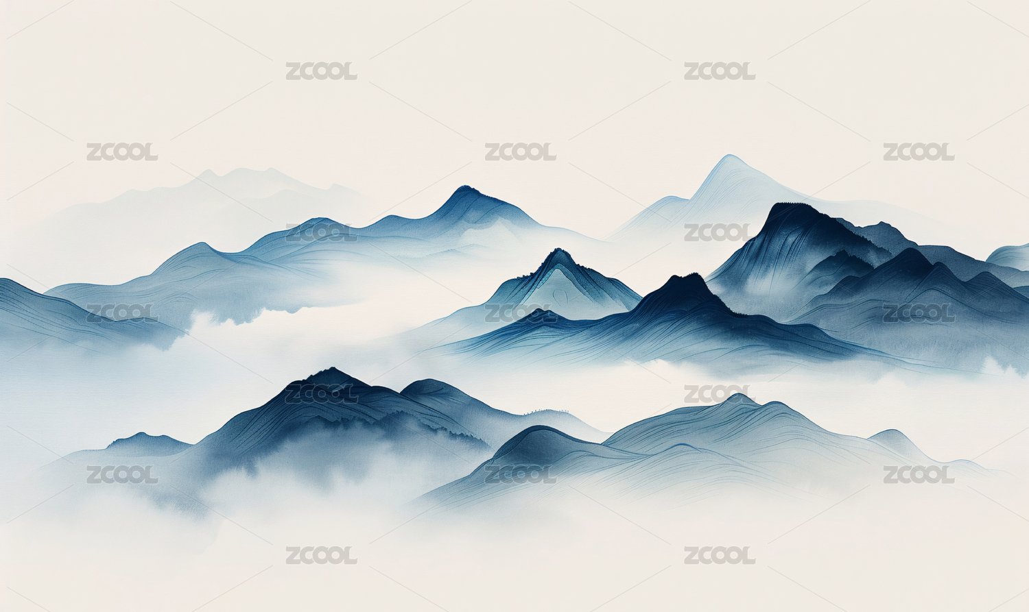 青山,远黛,山脉,云雾,青色,白色,层叠,远近,虚实,对比