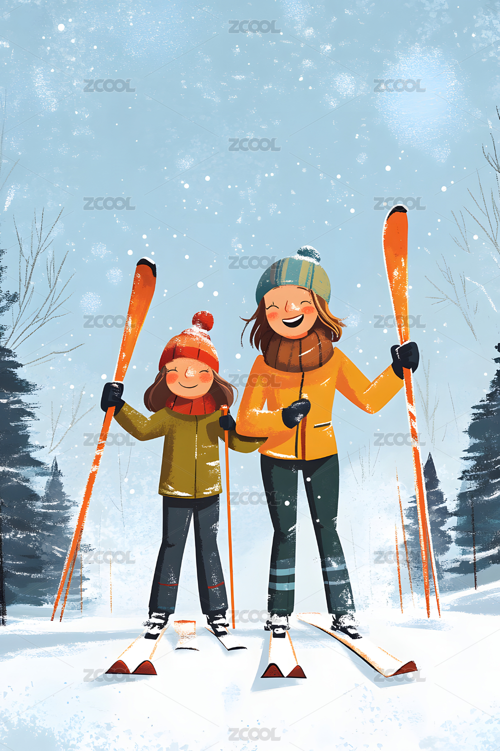 滑雪,女孩,插画,素材,运动,冬天,涂鸦风