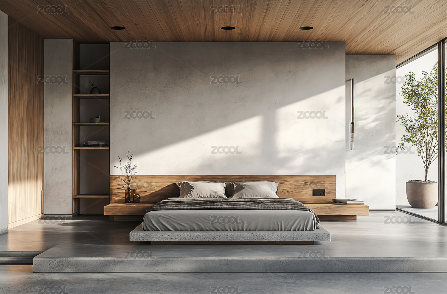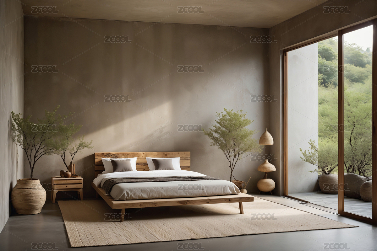 床,枕头,毯子,地毯,窗户,树木,自然,光线,墙壁,地板