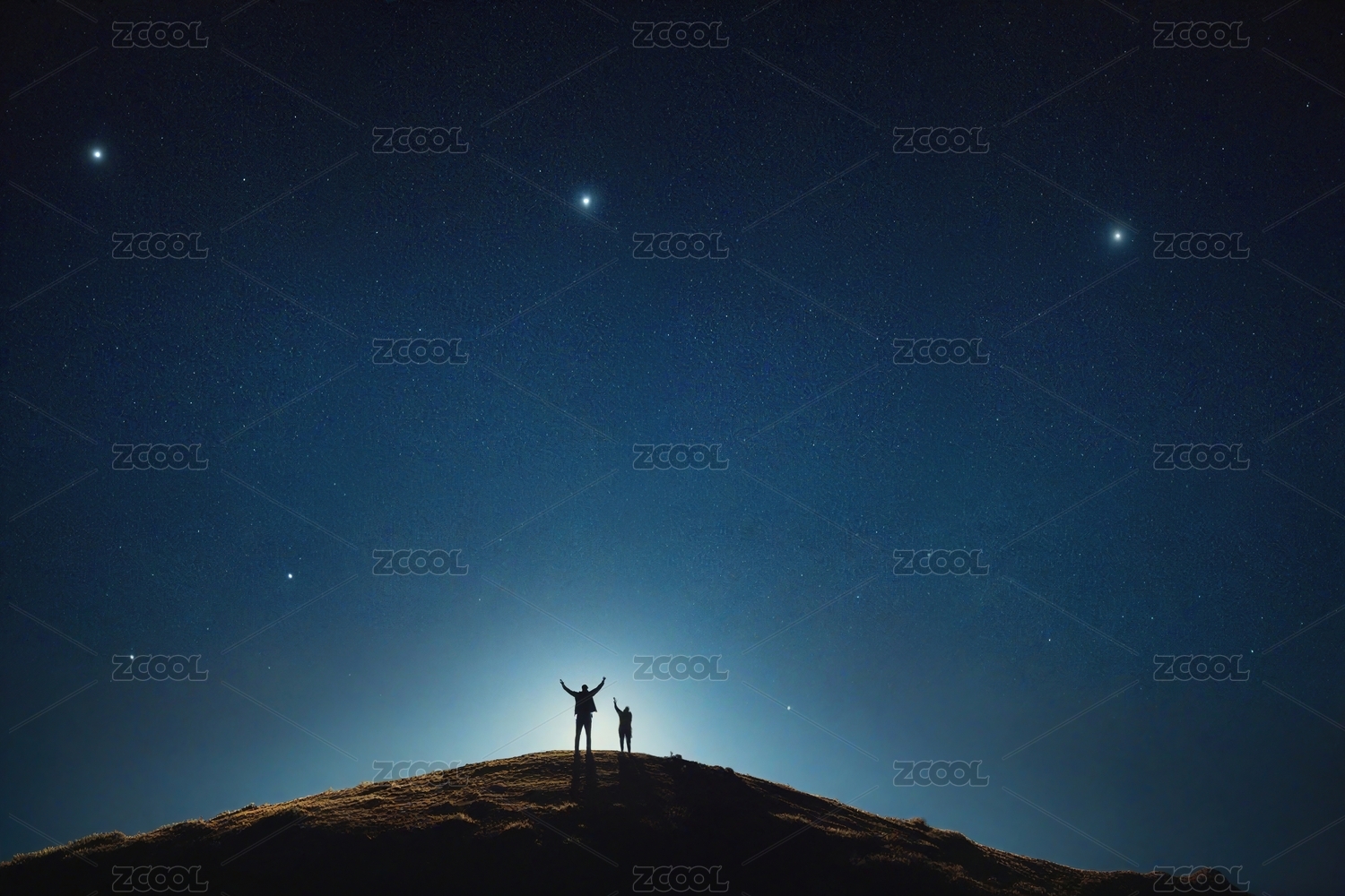 人物剪影山间星空场景