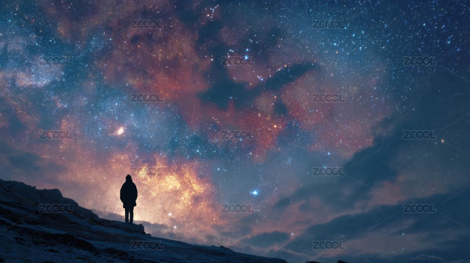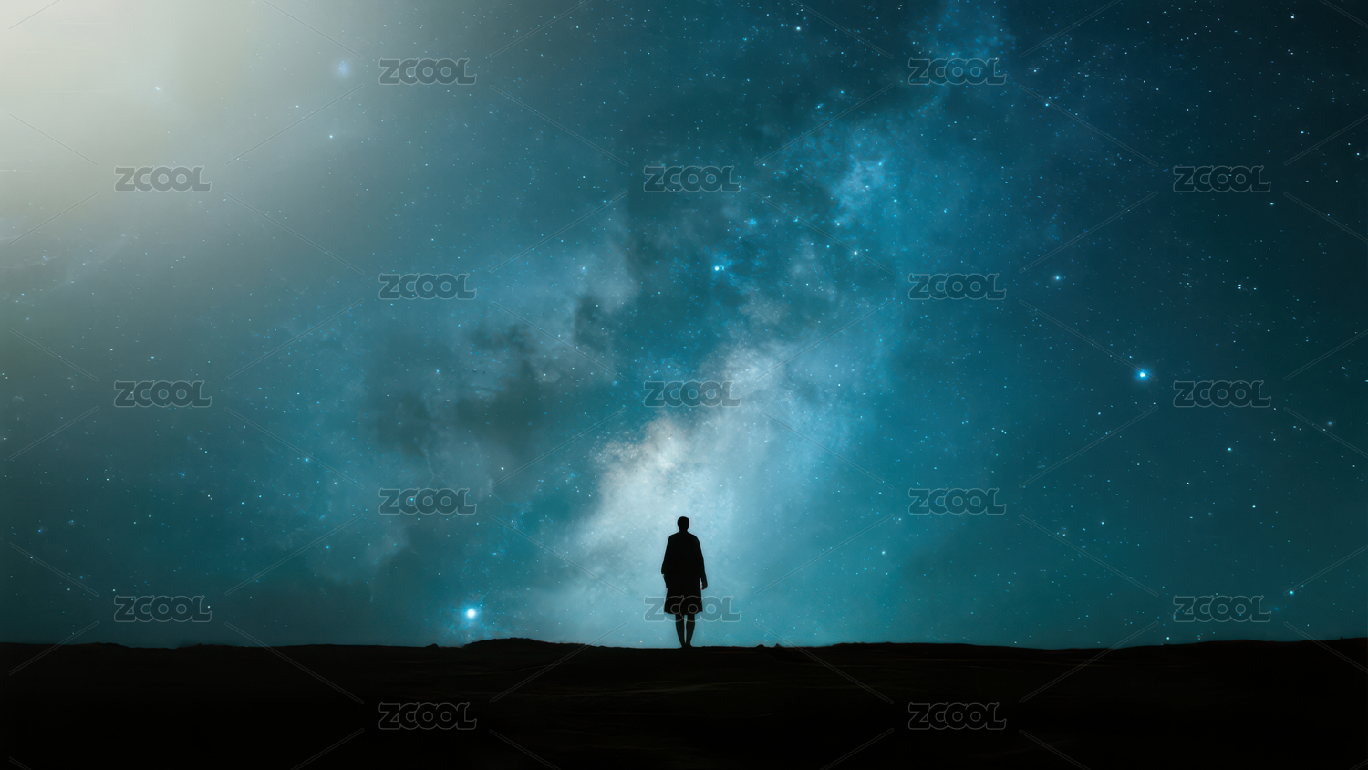 人于星空下伫立身影孤寂