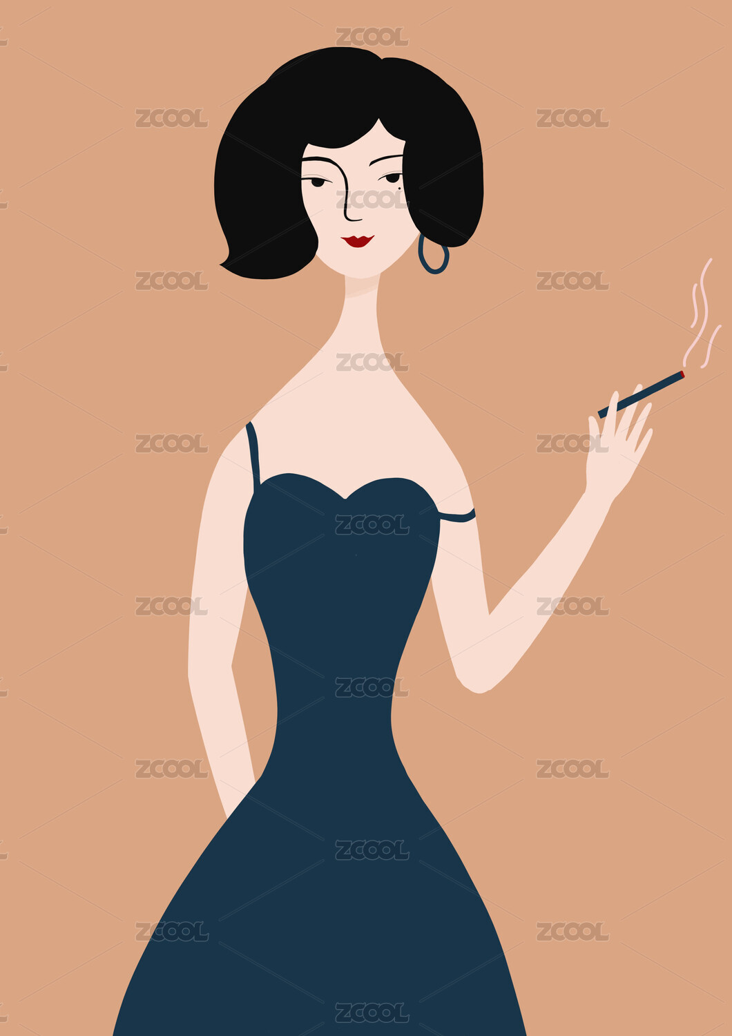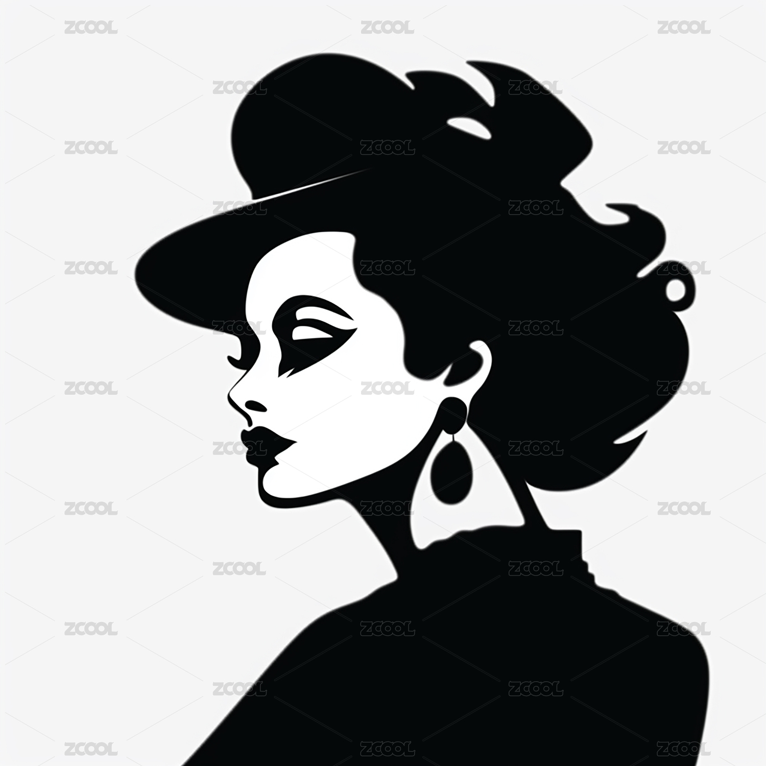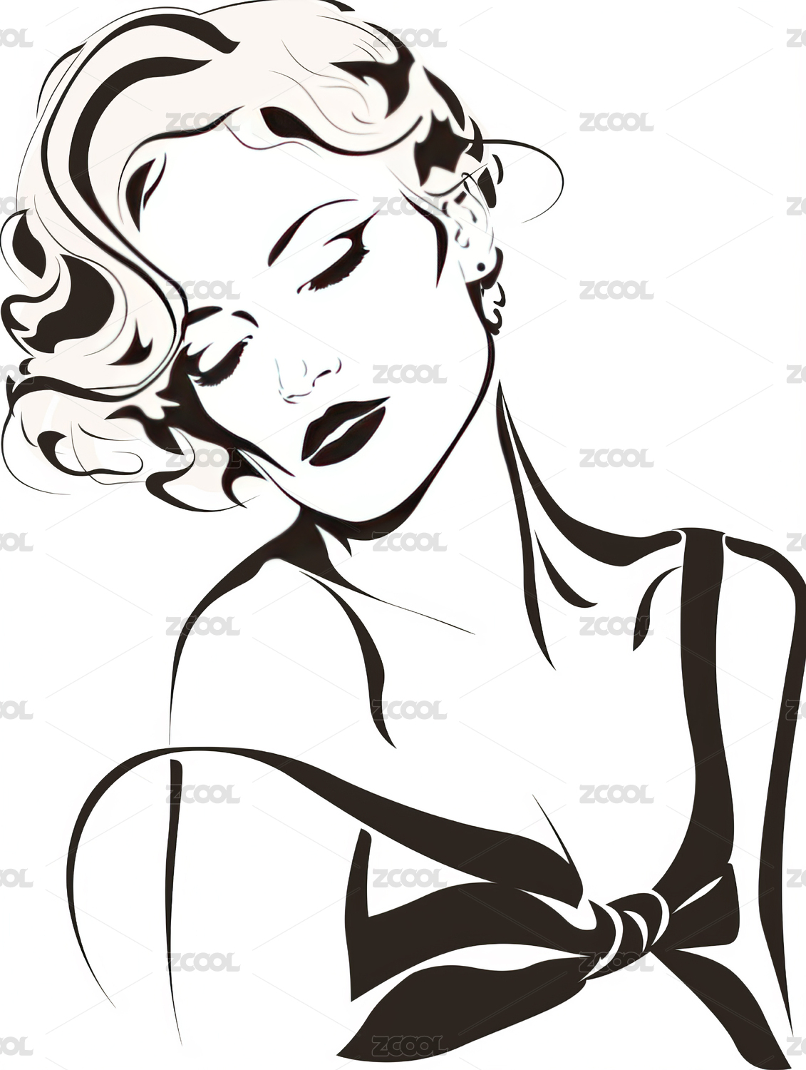 水墨,女士,摩登,女郎,发型,背心,时装,女人