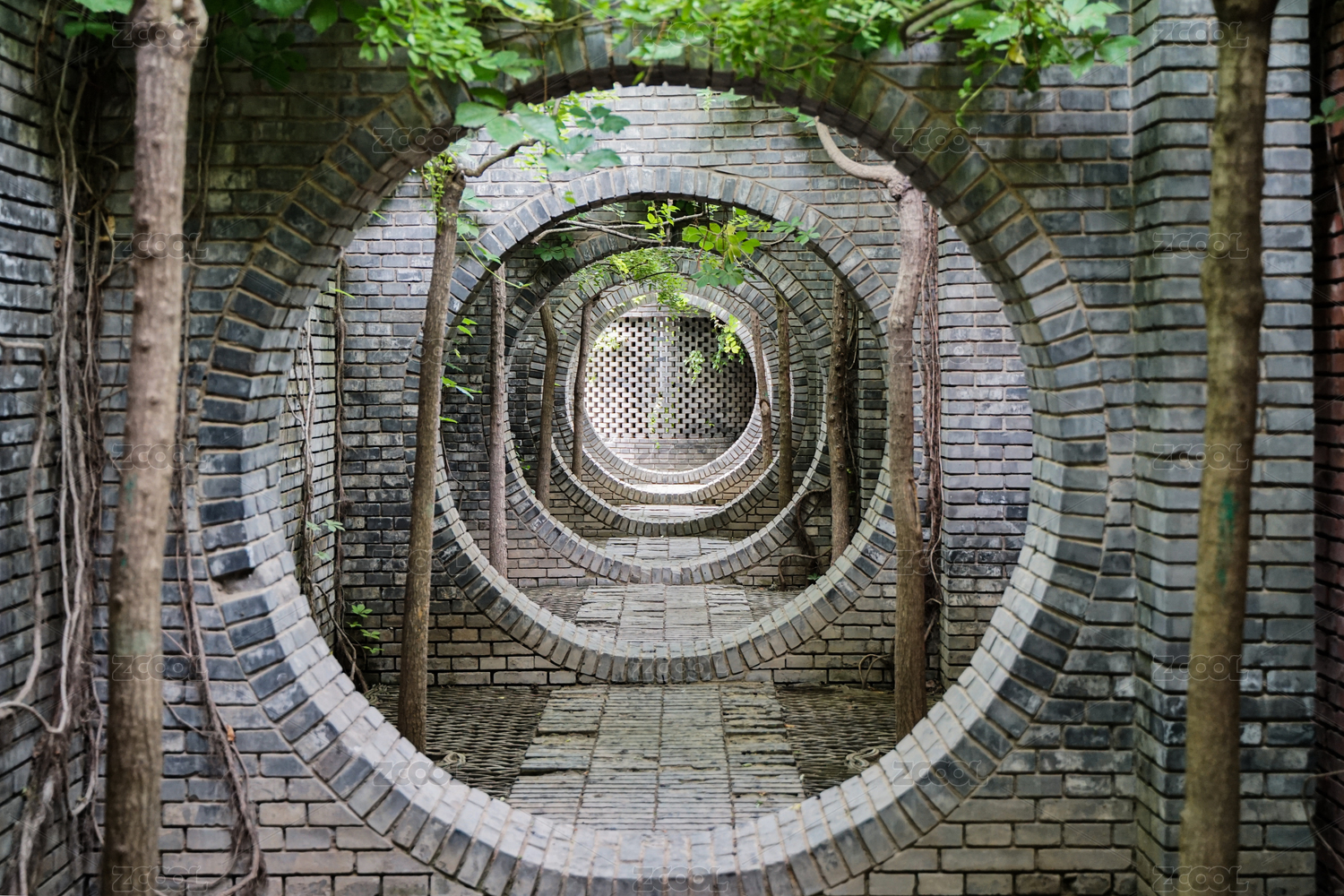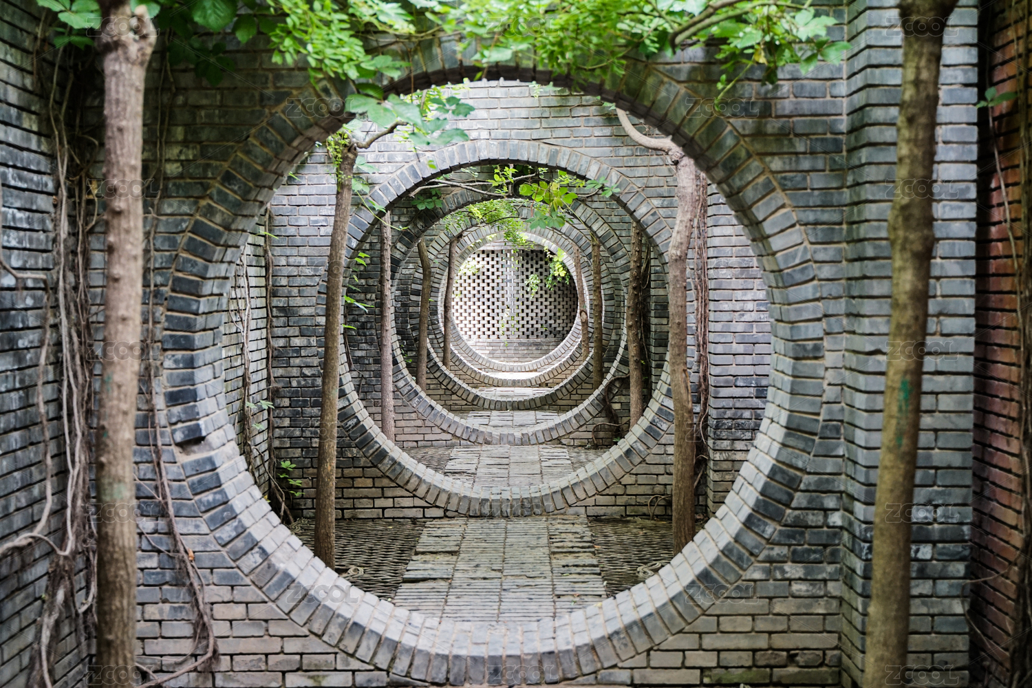 长廊,圆形,古典,园林,复古,建筑,走廊,拱,砖,古代