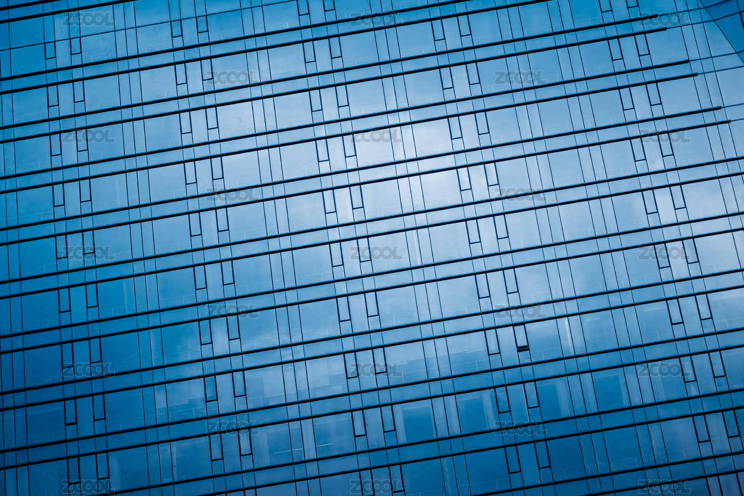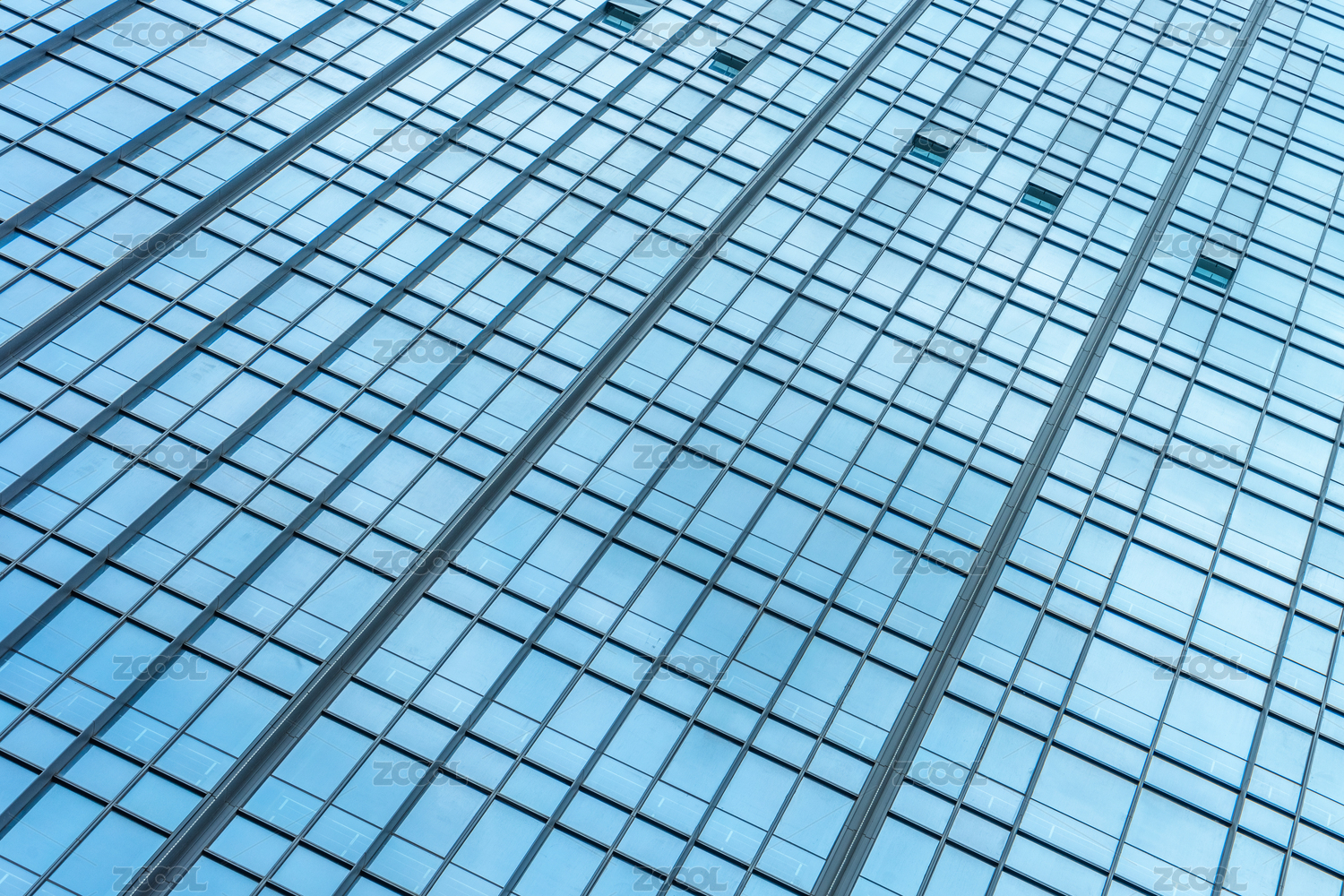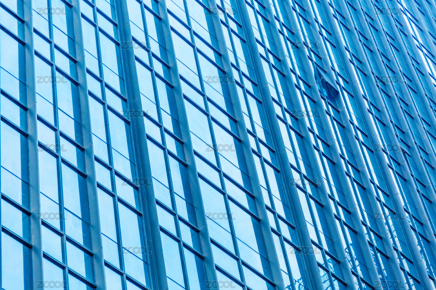 抽象的建筑摩天大楼的蓝色玻璃墙