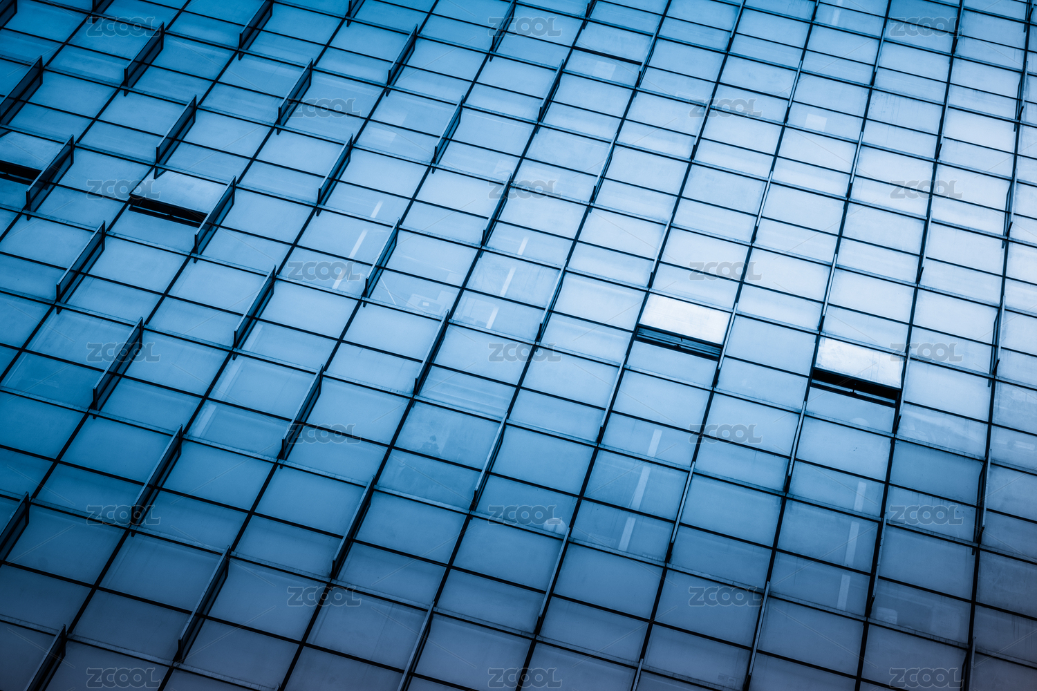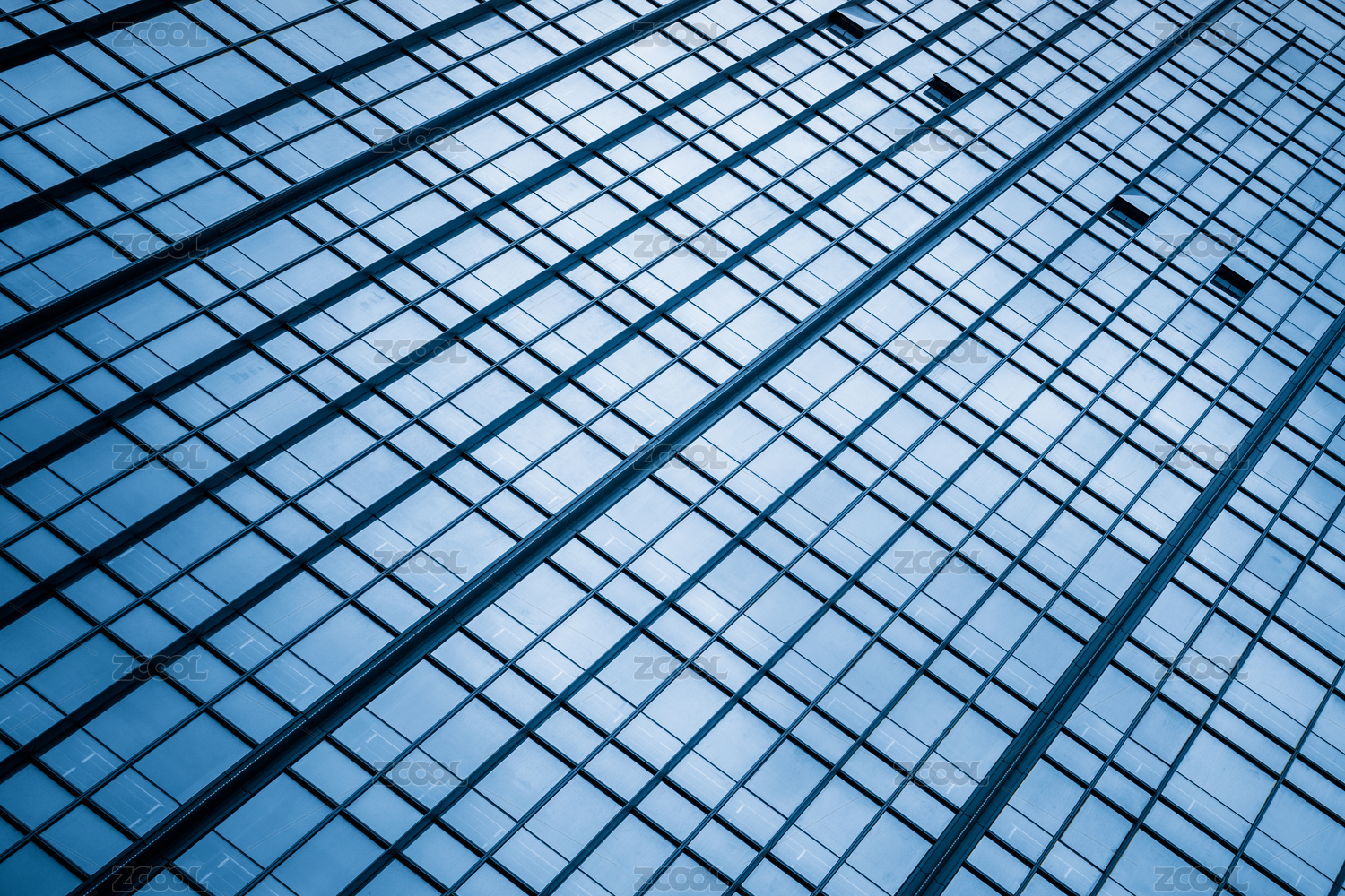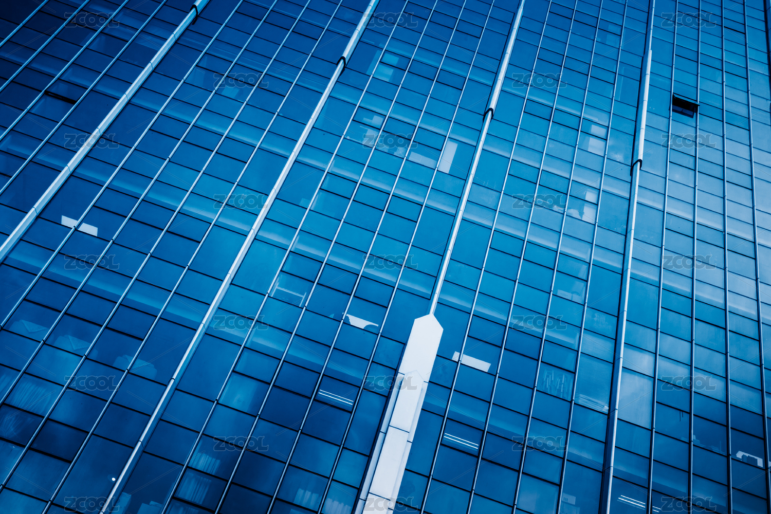 抽象的建筑摩天大楼的蓝色玻璃墙