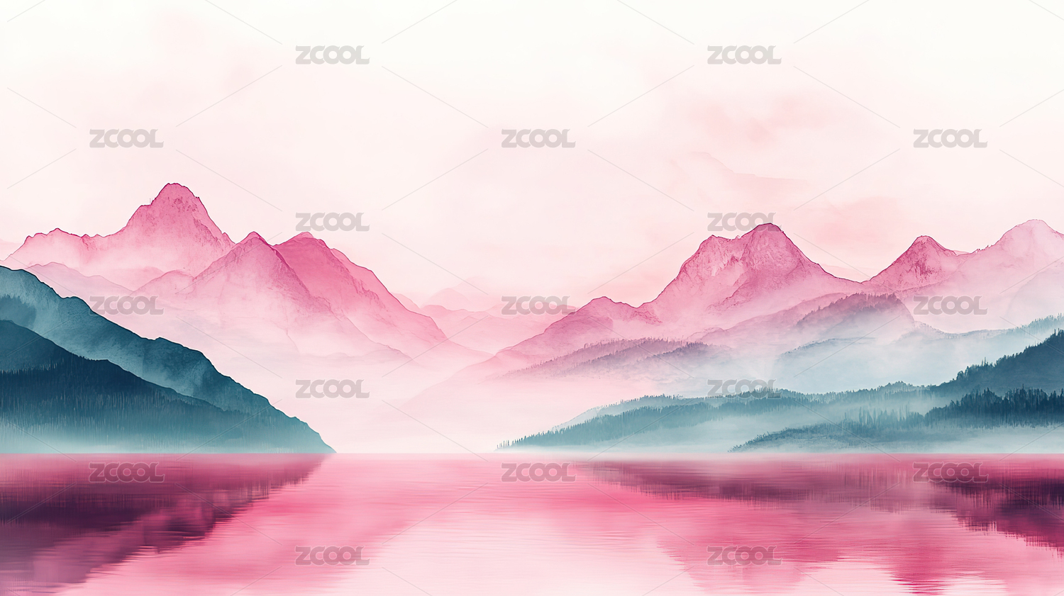 风景,中国画,水墨画,背景,湖,艺术,高山,插画
