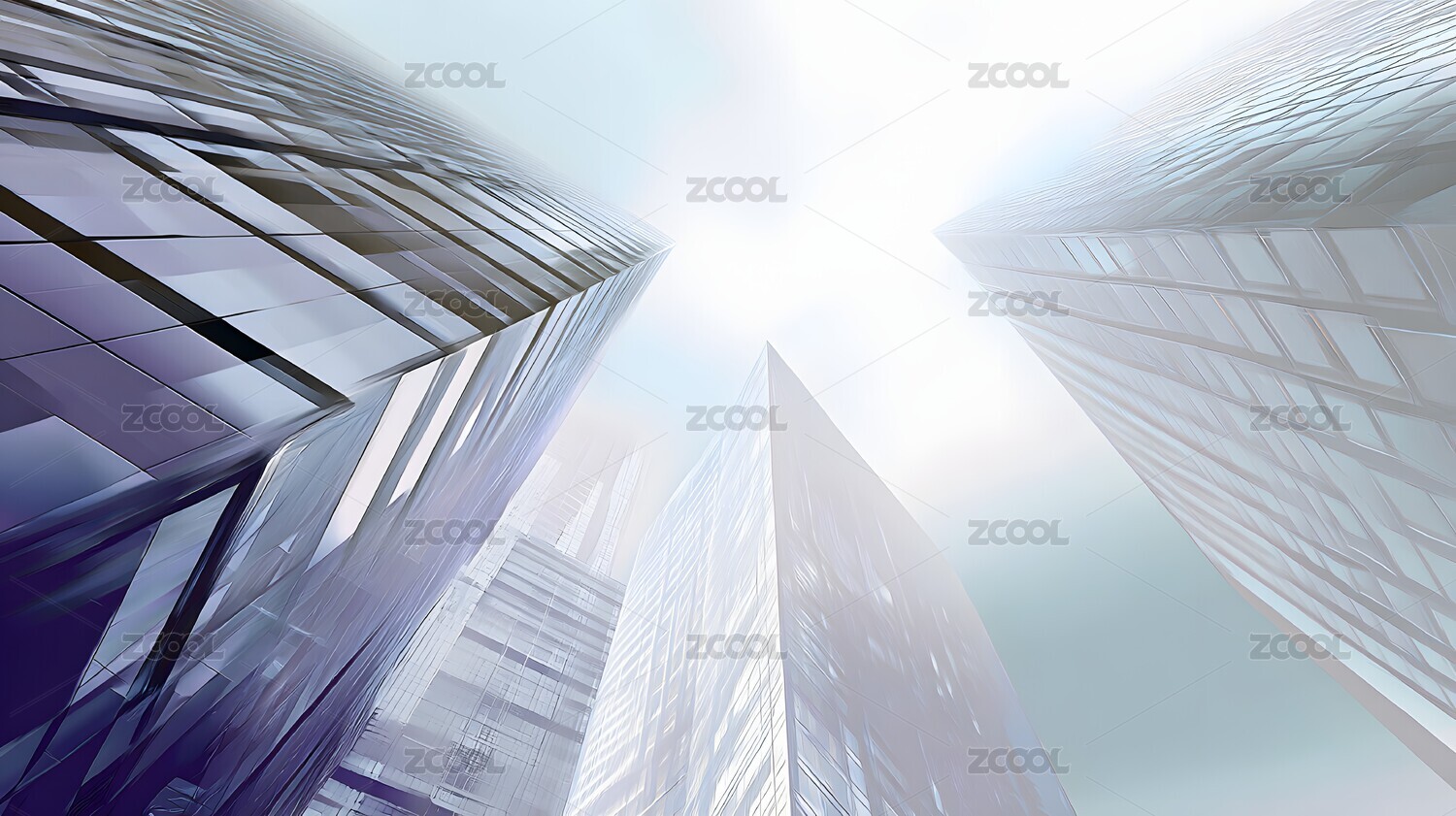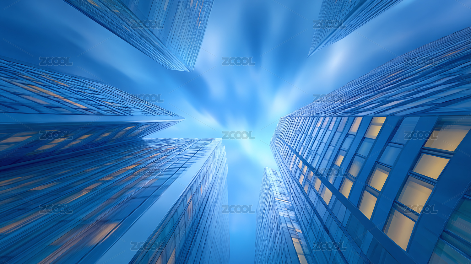 玻璃幕墙建筑仰视视角,天空云朵呈现对称美