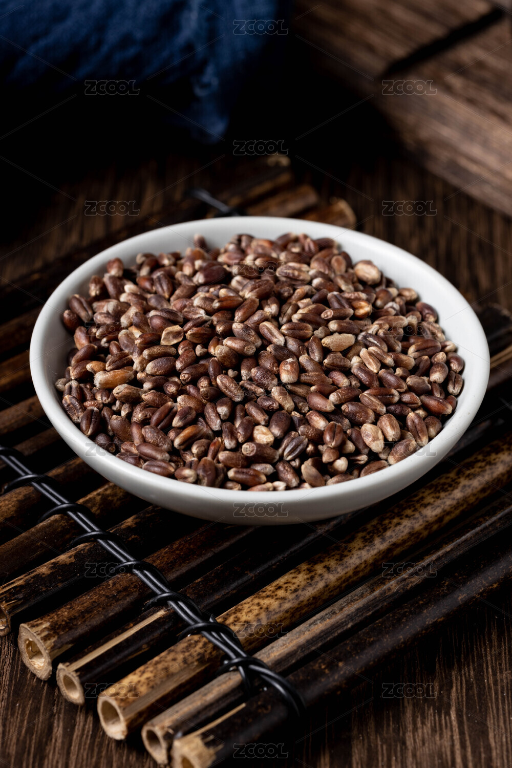 中复古场景中装在碗里的放在桌子上的黑麦仁
