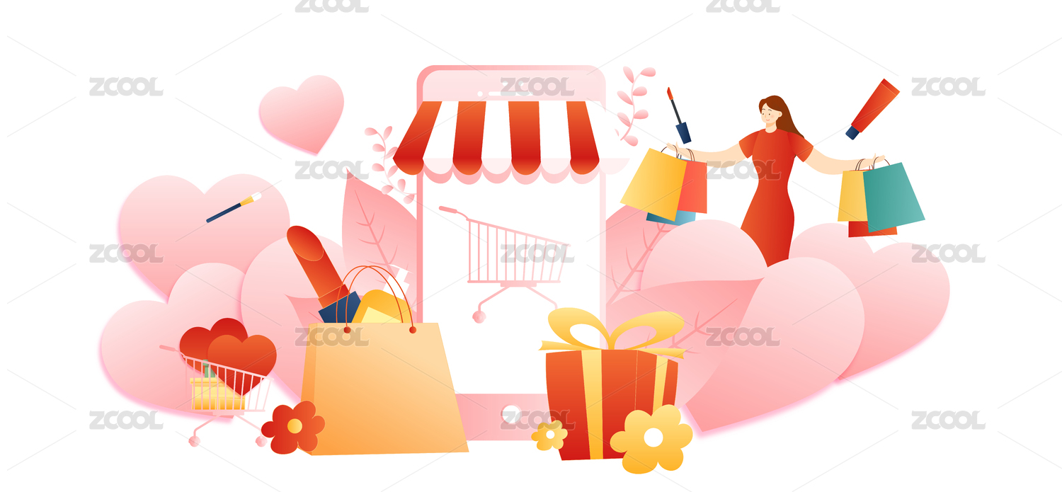 DXCZ202401,电商,双十一,购物,单身节,插画,购物车,篮子,商品,风格