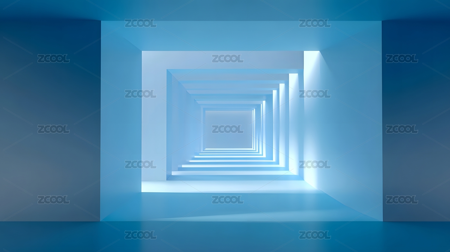 数码渐变蓝橘白色玻璃几何横版海报背景