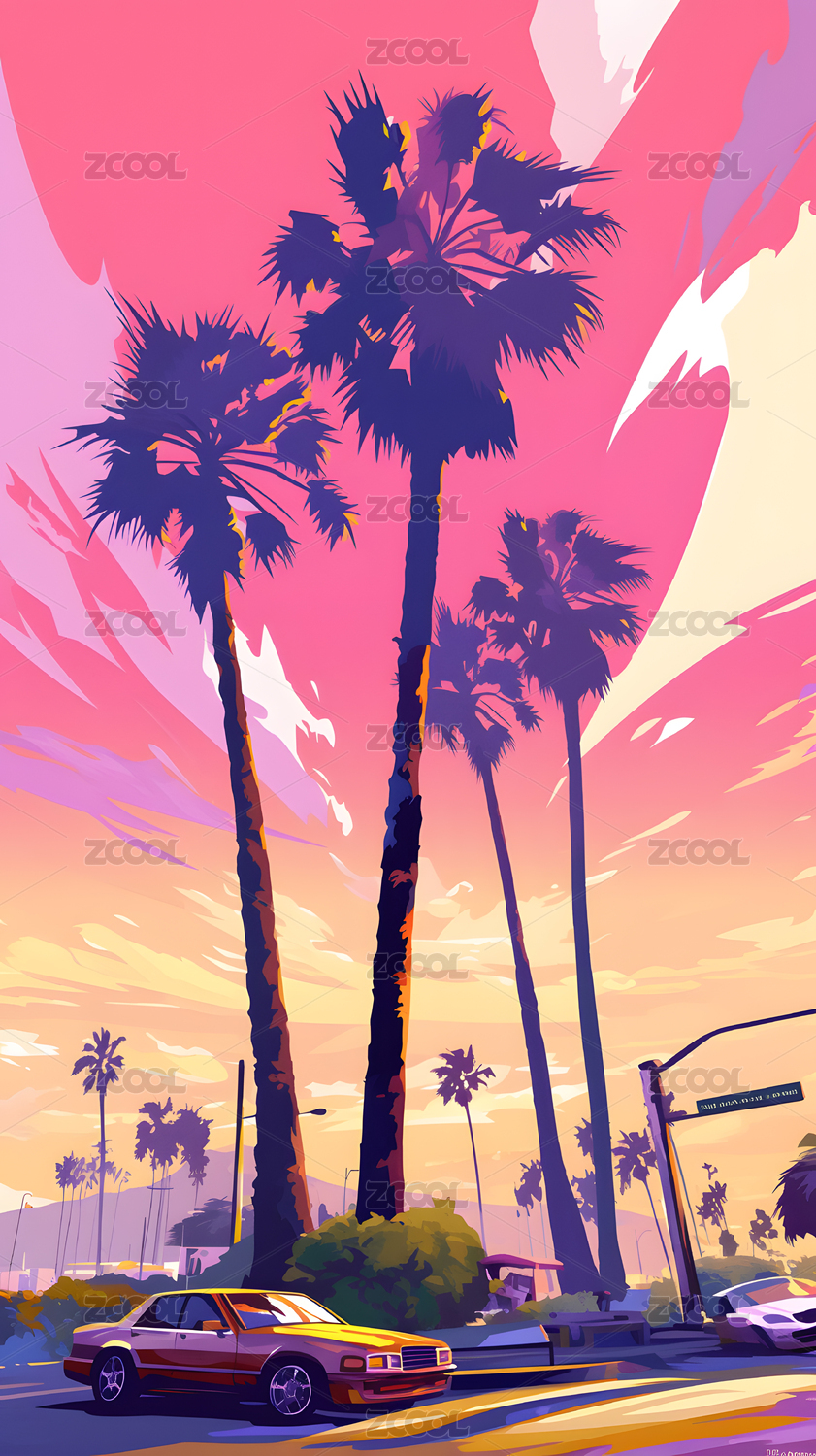 复古,阳光,景观,彩色,抽象,几何,图形,设计,装饰,道路