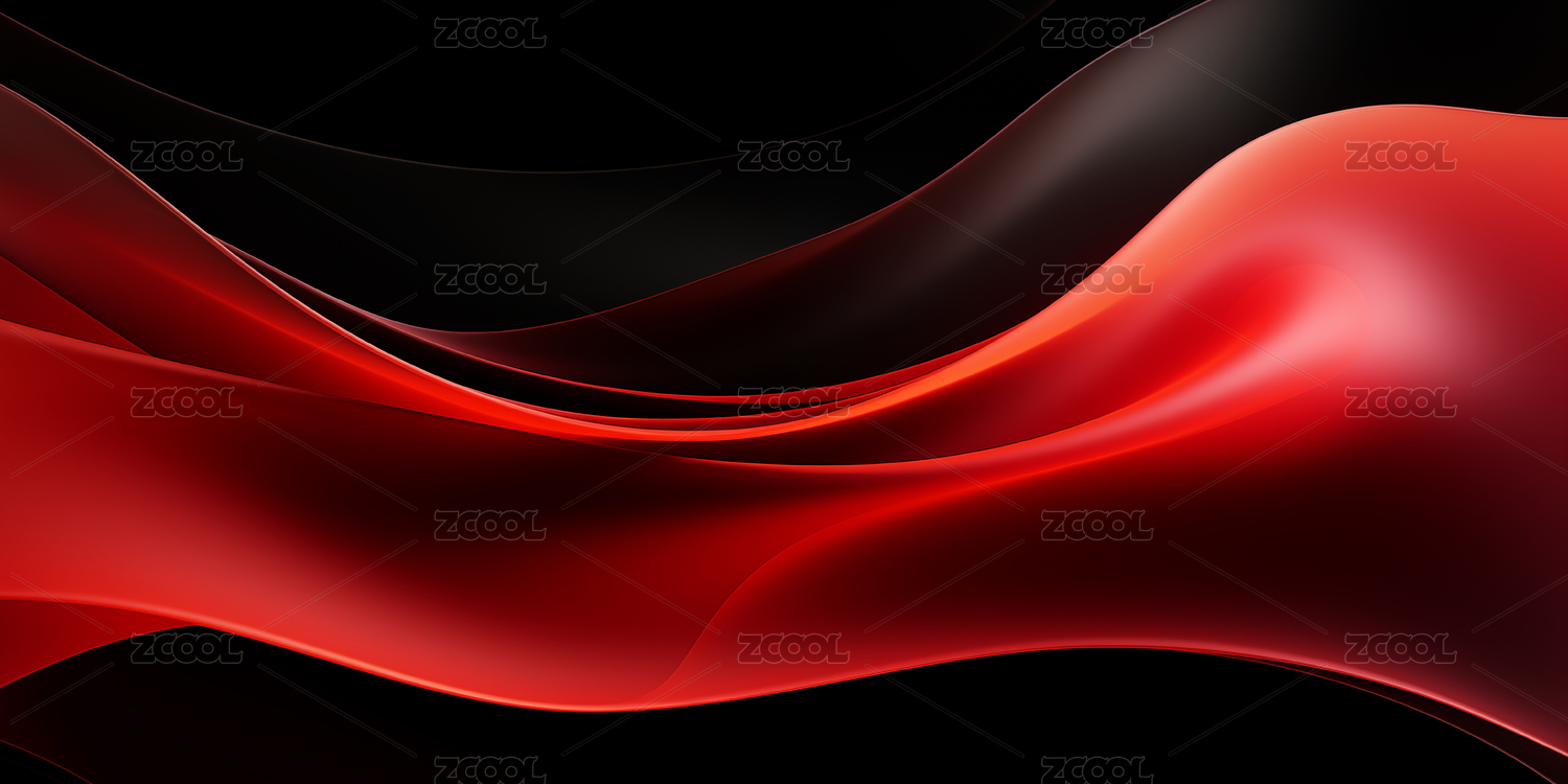 深邃黑红交织的抽象艺术波浪