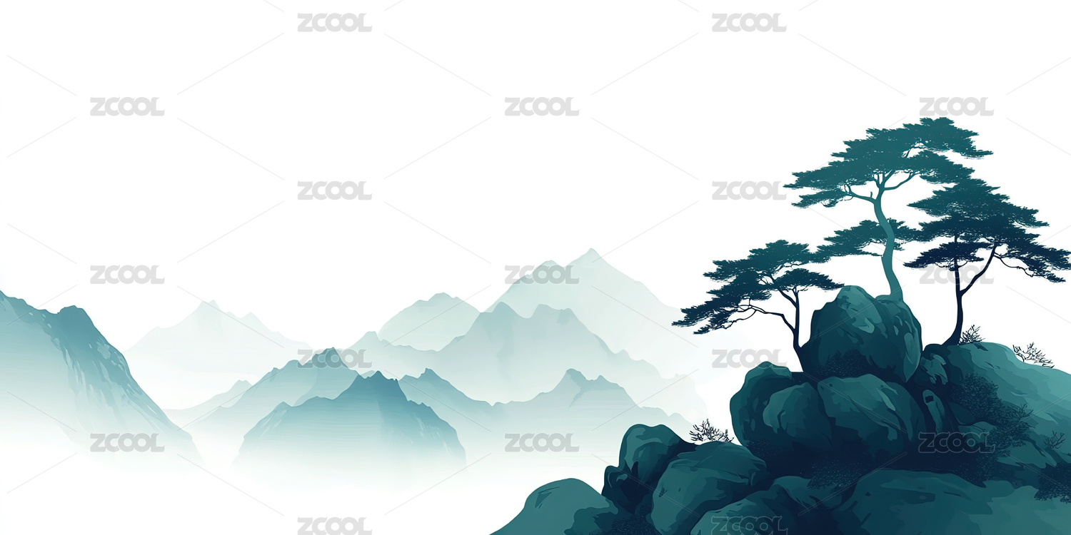 水墨画,山水画,宁静,禅意,写意,风景,树木,山峦,自然,传统