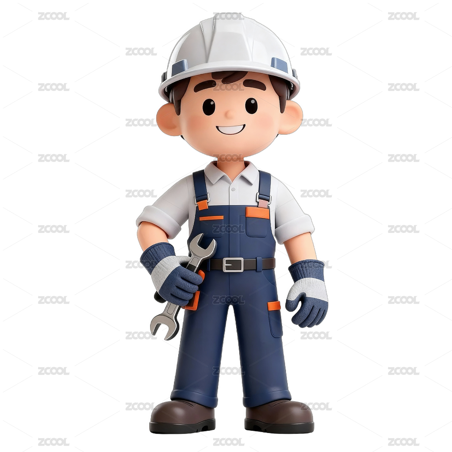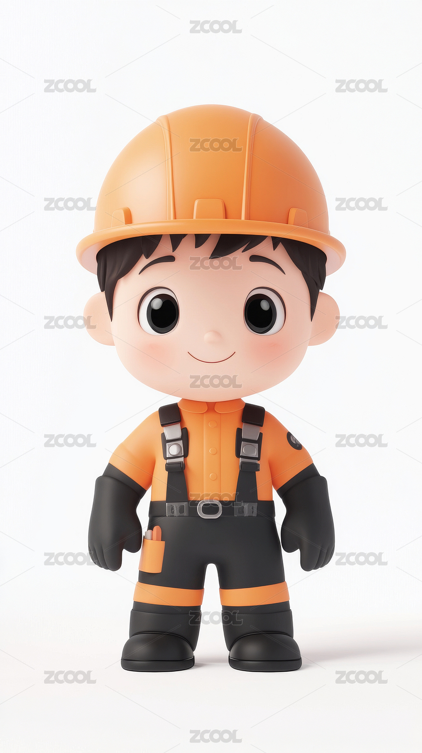 卡通,3D,建筑,工人,安全帽,工程,可爱,童趣,模型,人物