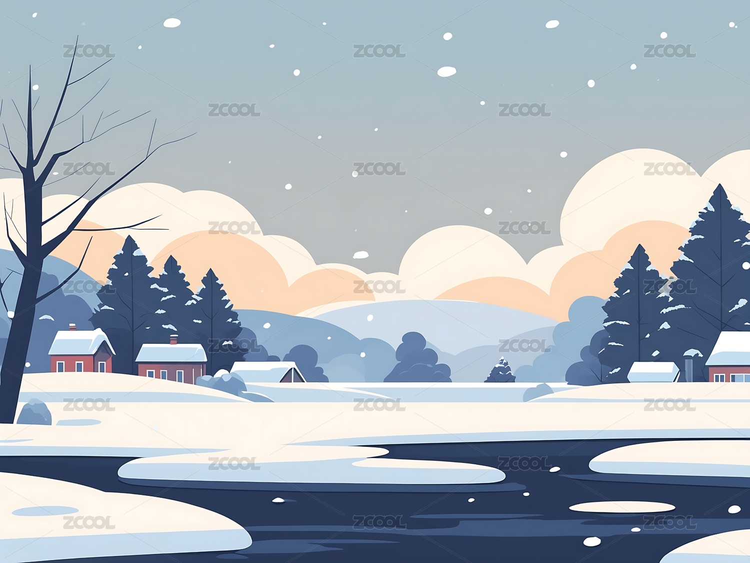 冬天,插画,扁平画风,DXCZ202402,冬至