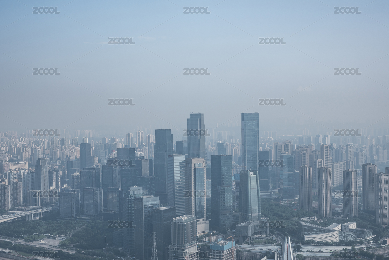 白天俯瞰成都高新区密集的摩天大楼建筑群