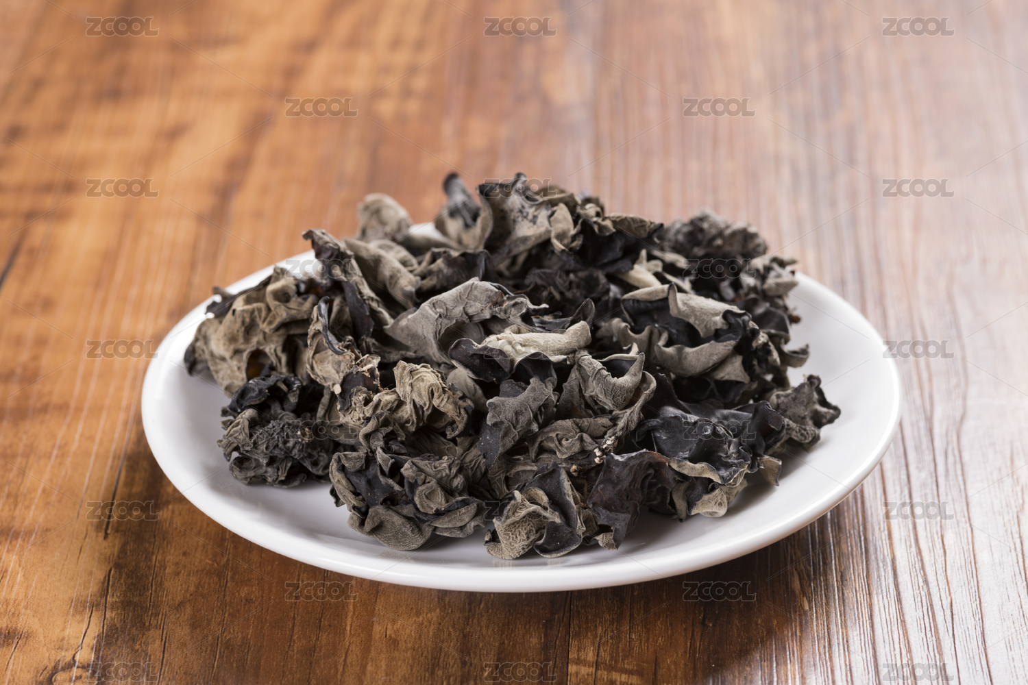 摆放在白色瓷盘中的山珍黑木耳