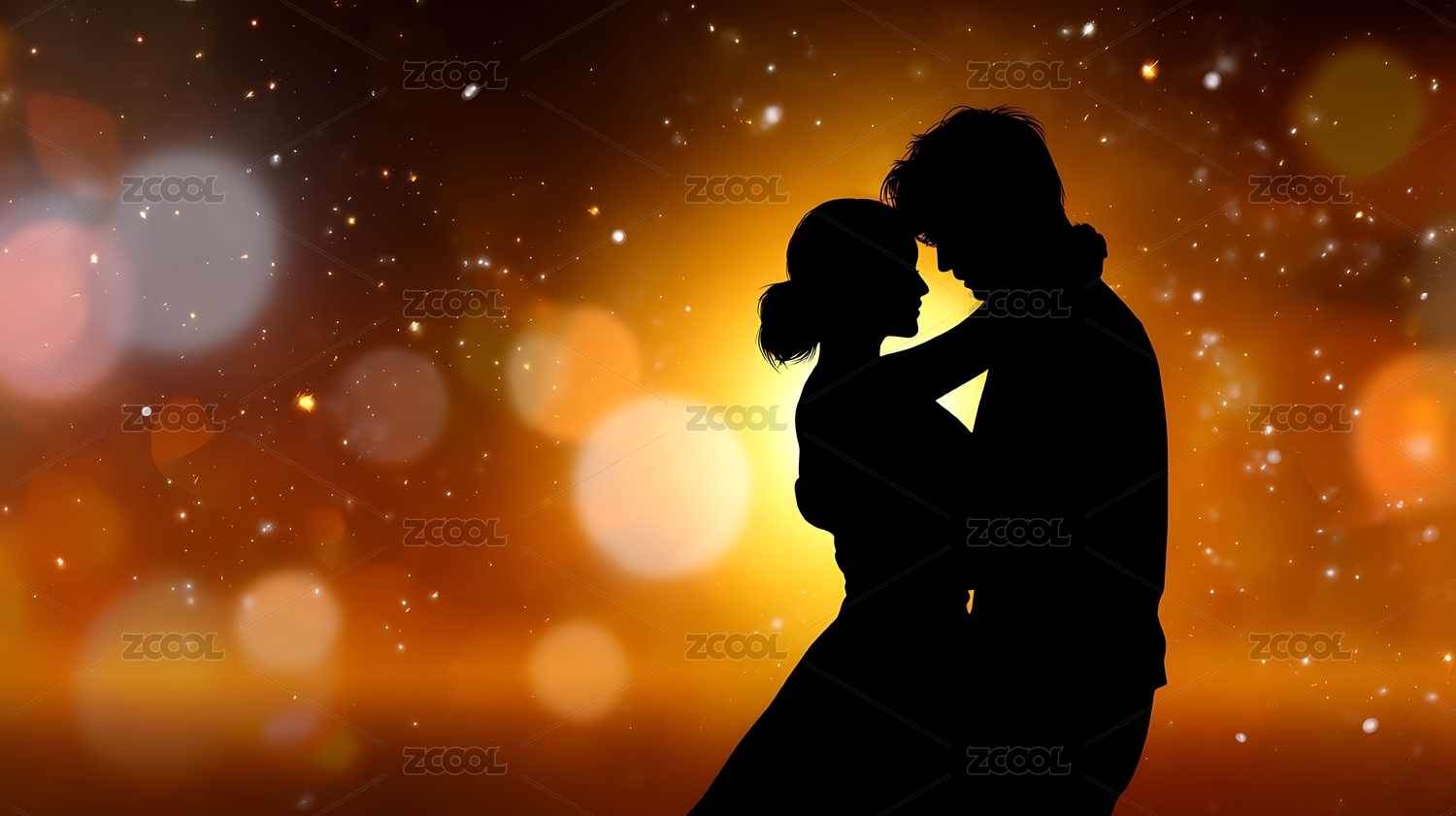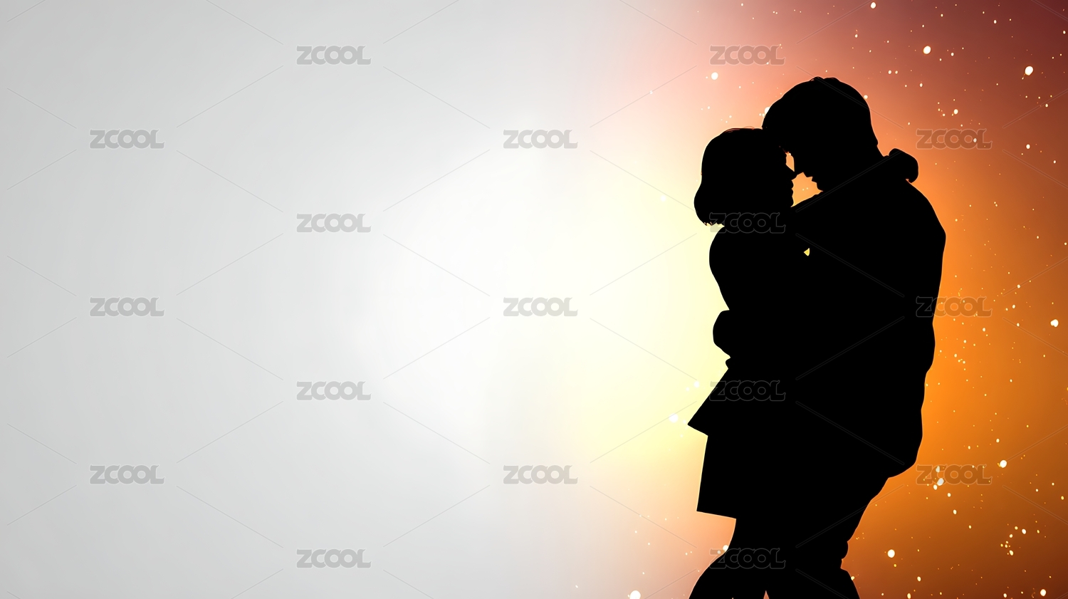 剪影恋人深情相拥