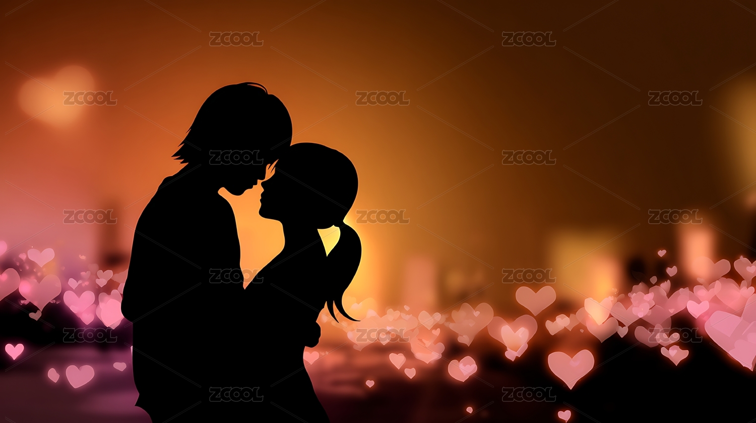 情侣相拥粉色背景爱心氛围