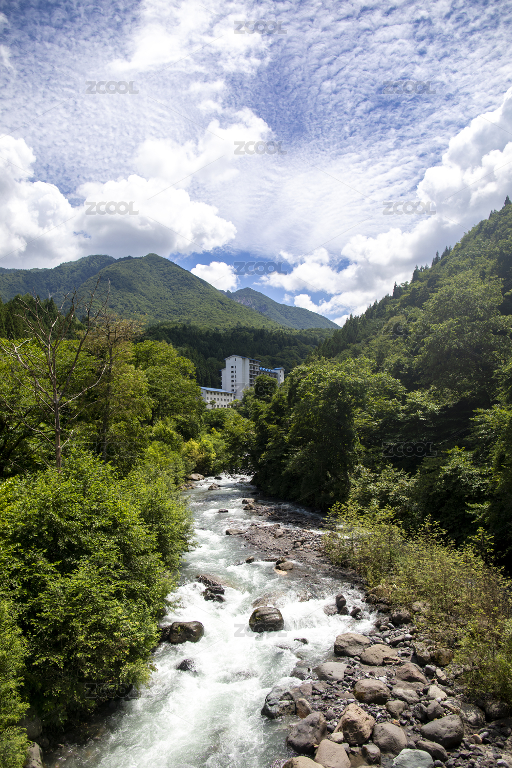亚洲日本北海道札幌定山溪的温泉小镇风光