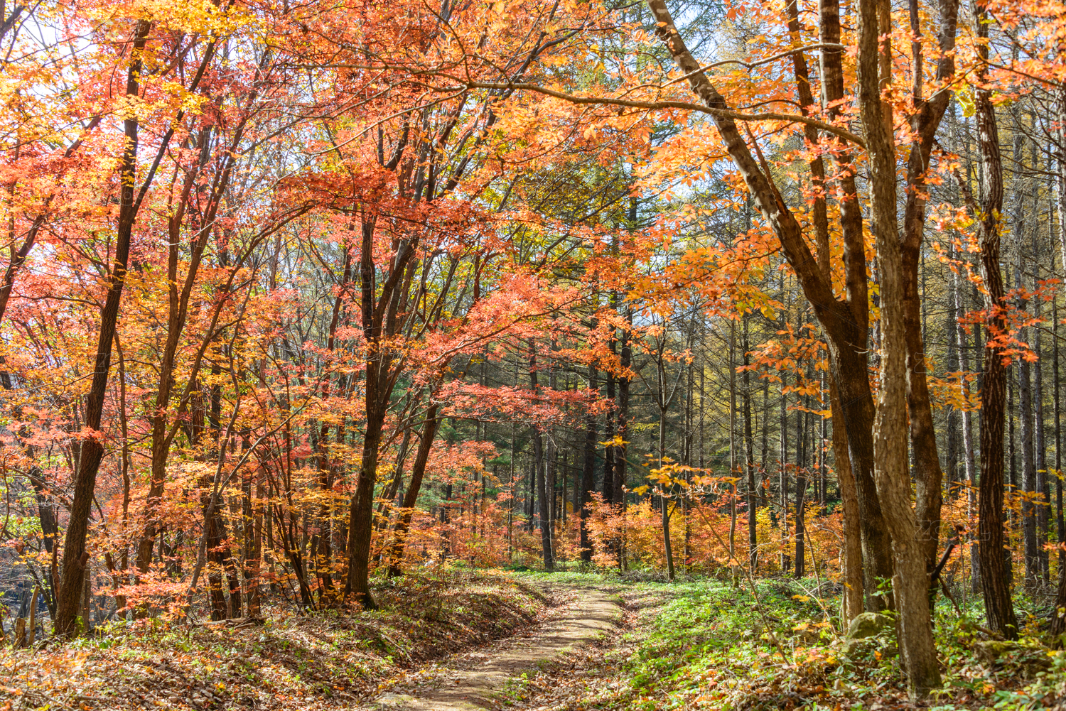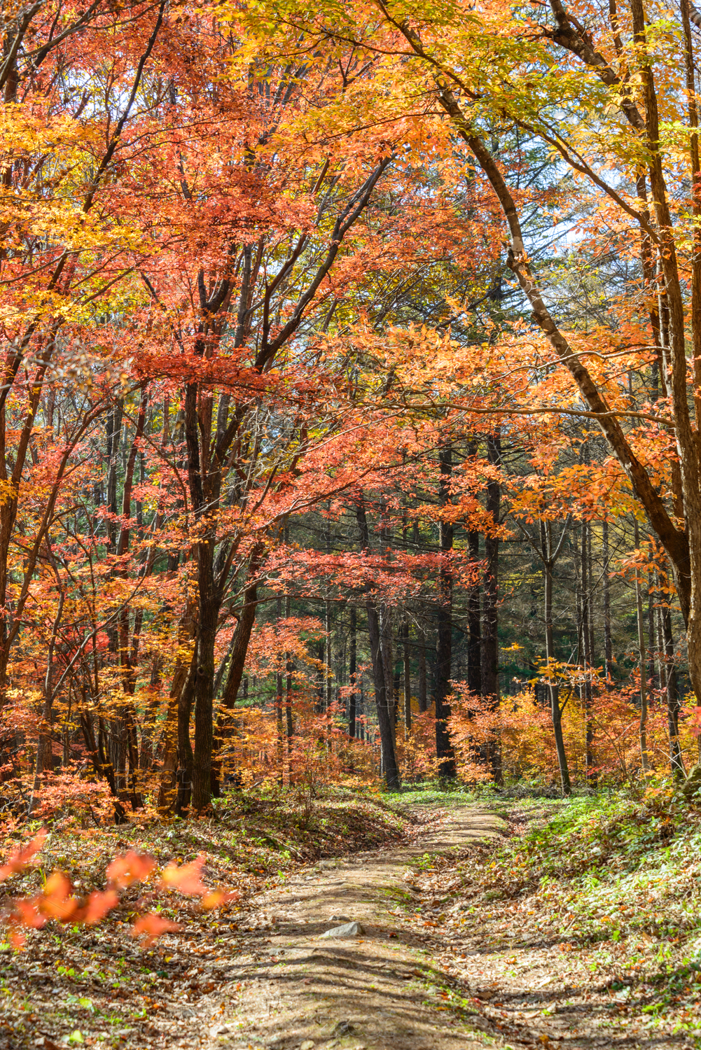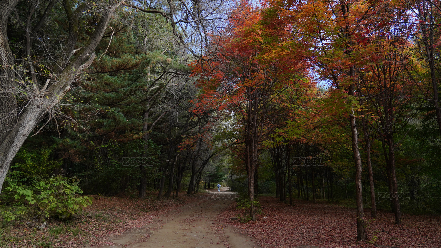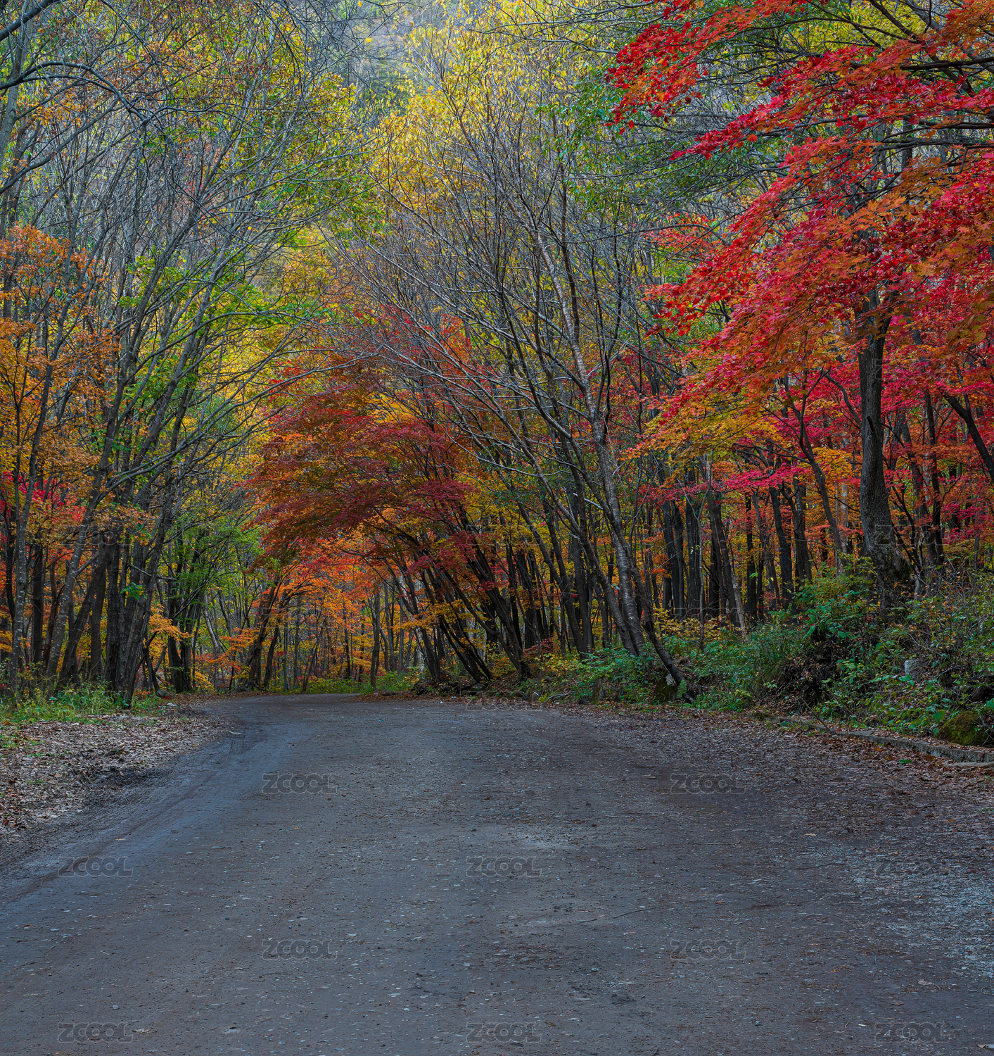 沈阳本溪老边沟 秋天多彩枫叶林间小路风光