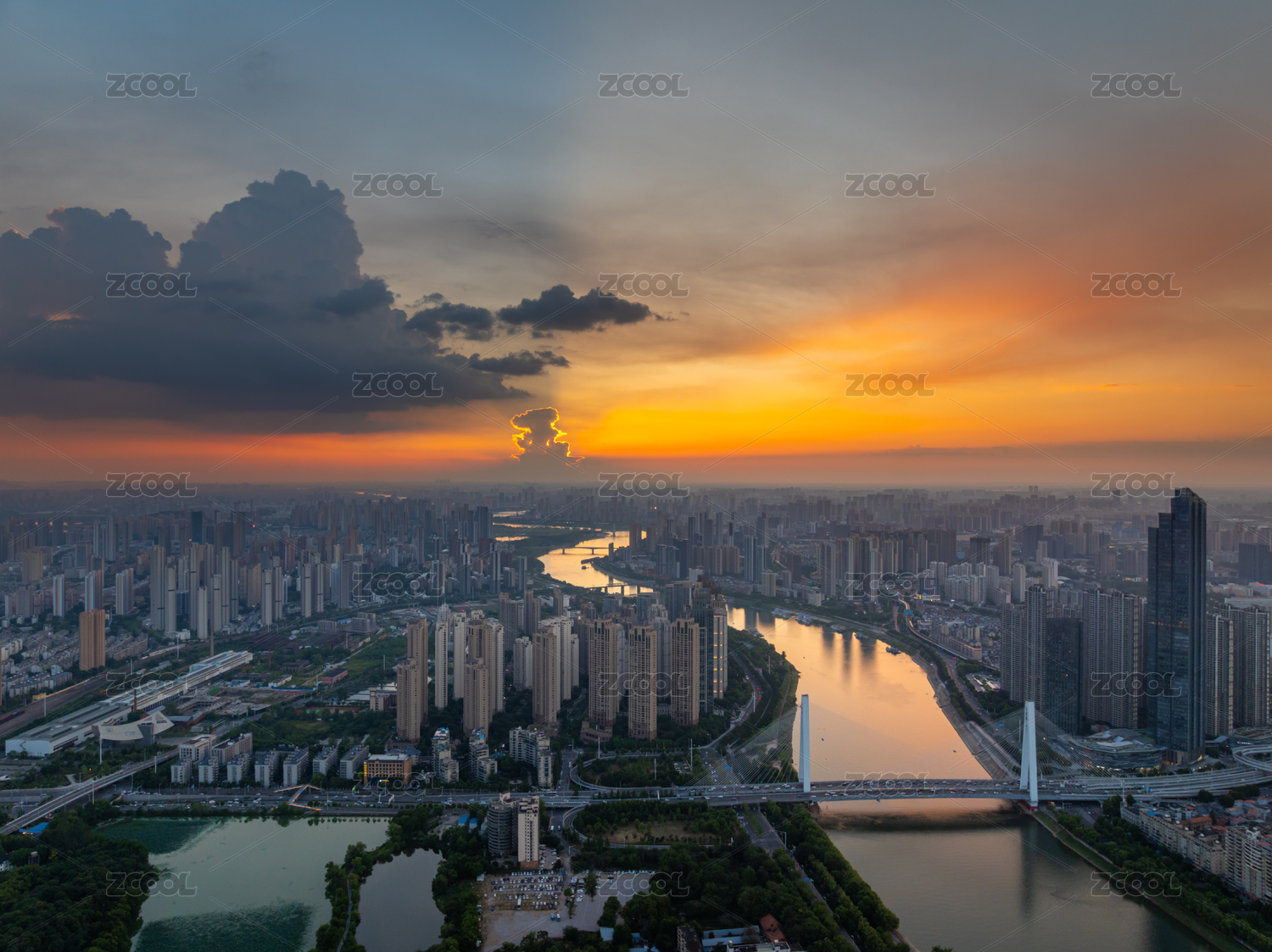 中国武汉鹦鹉洲长江大桥傍晚时光