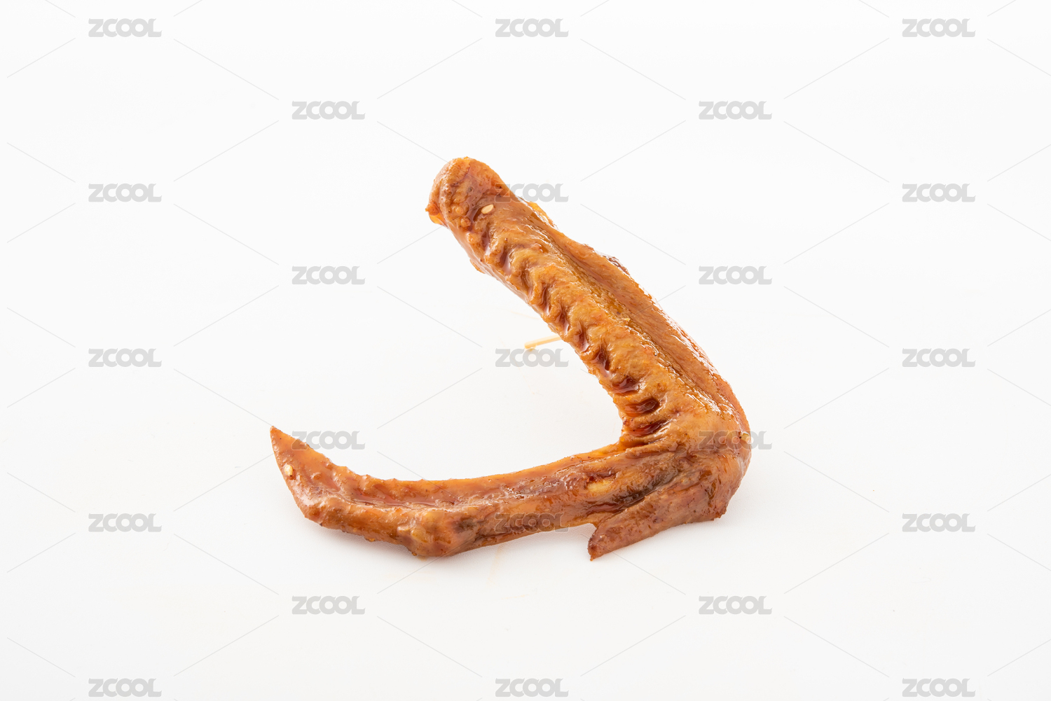 放在白底上的麻辣鲜香的酱卤鸭掌——卤味鸭掌