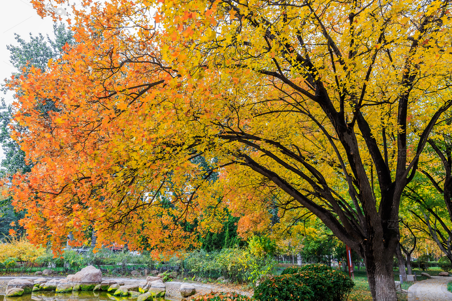 秋末冬初金黄色的枫树,中国山东省潍坊人民公园