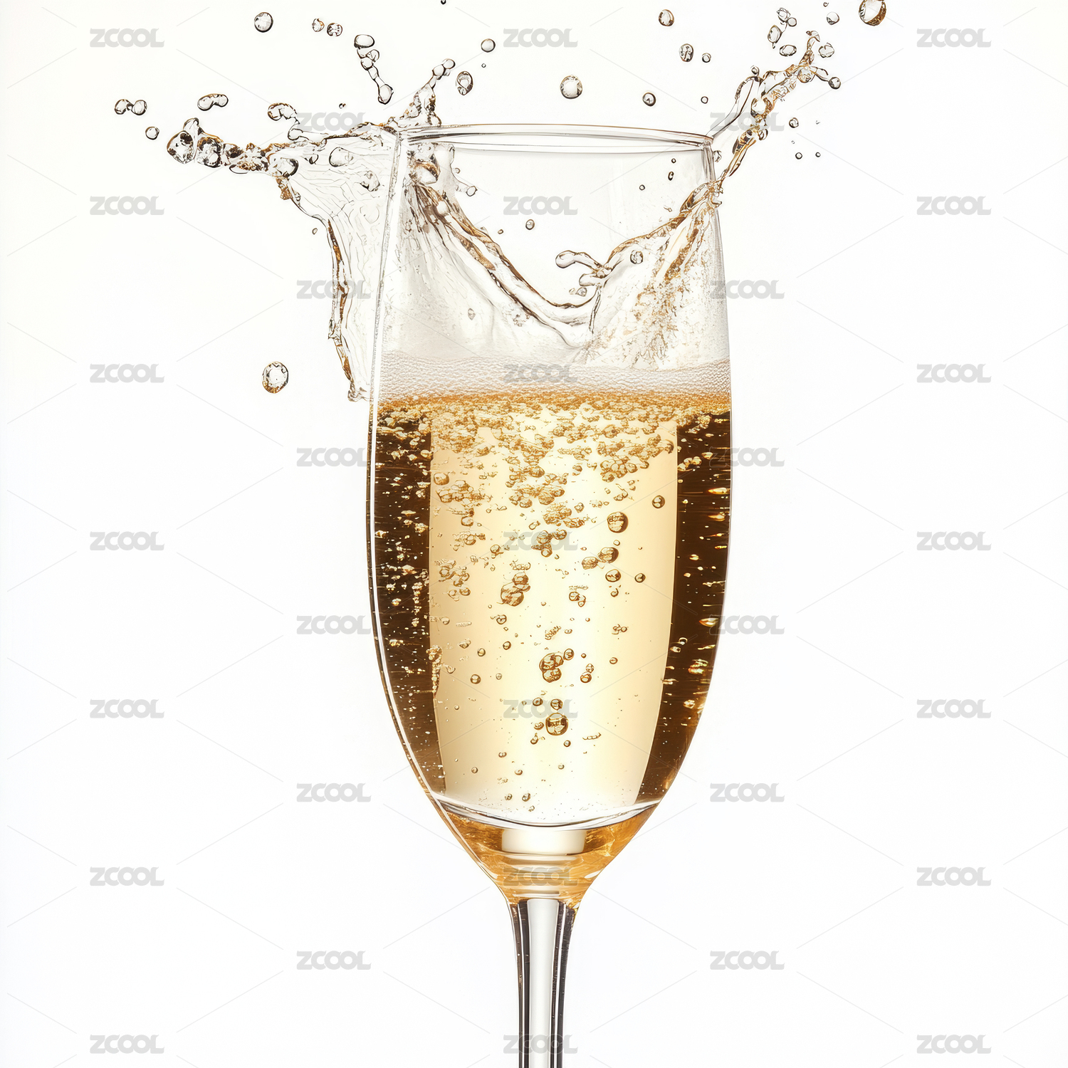 香槟酒从玻璃杯中飞溅而出的瞬间