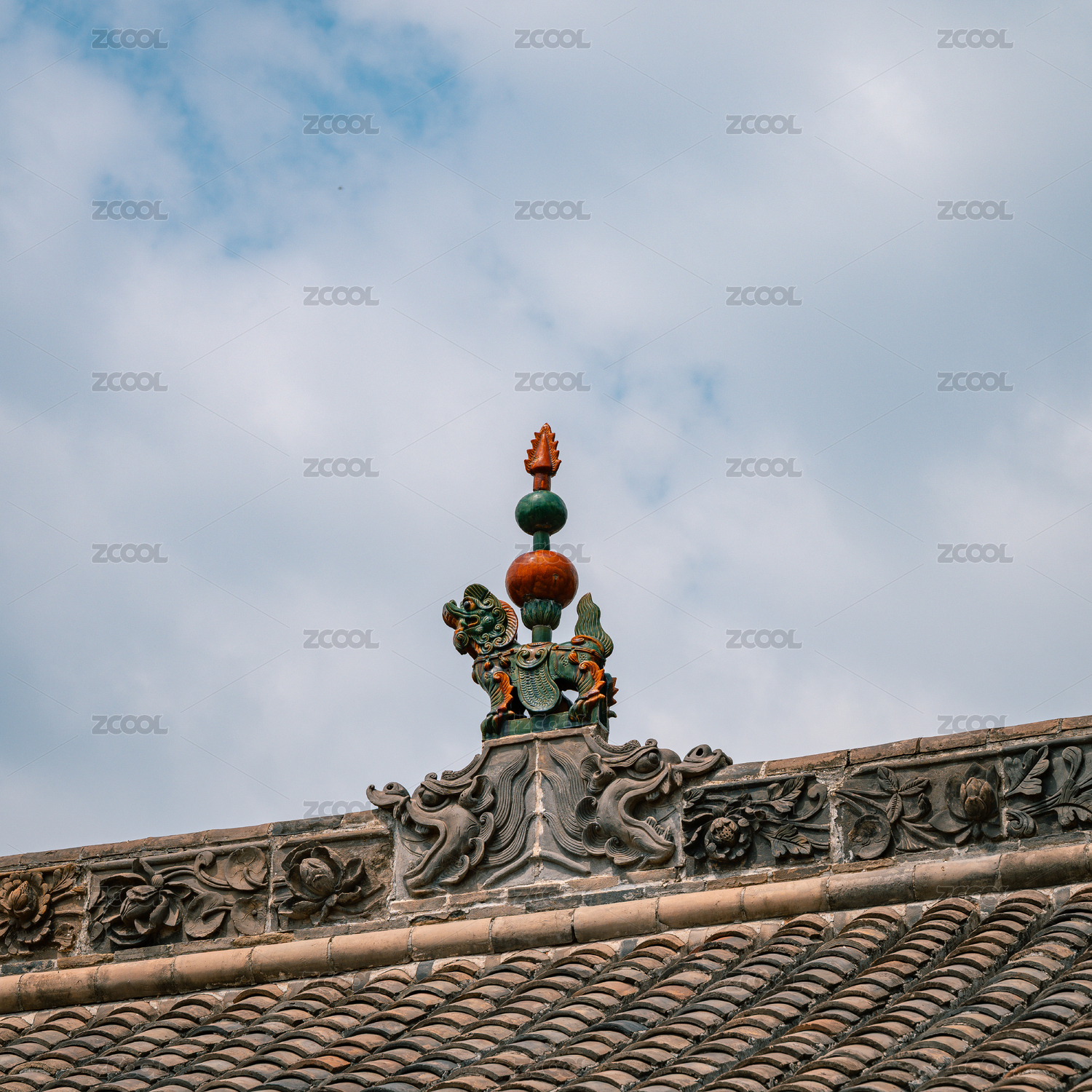 陈家大院(陈家桅杆)屋顶屋脊浮雕装饰细节