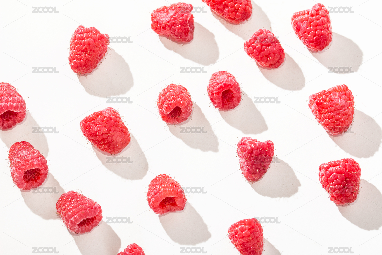 树莓,新鲜,水果,白色,背景,红色,果实,散落,白底,几颗
