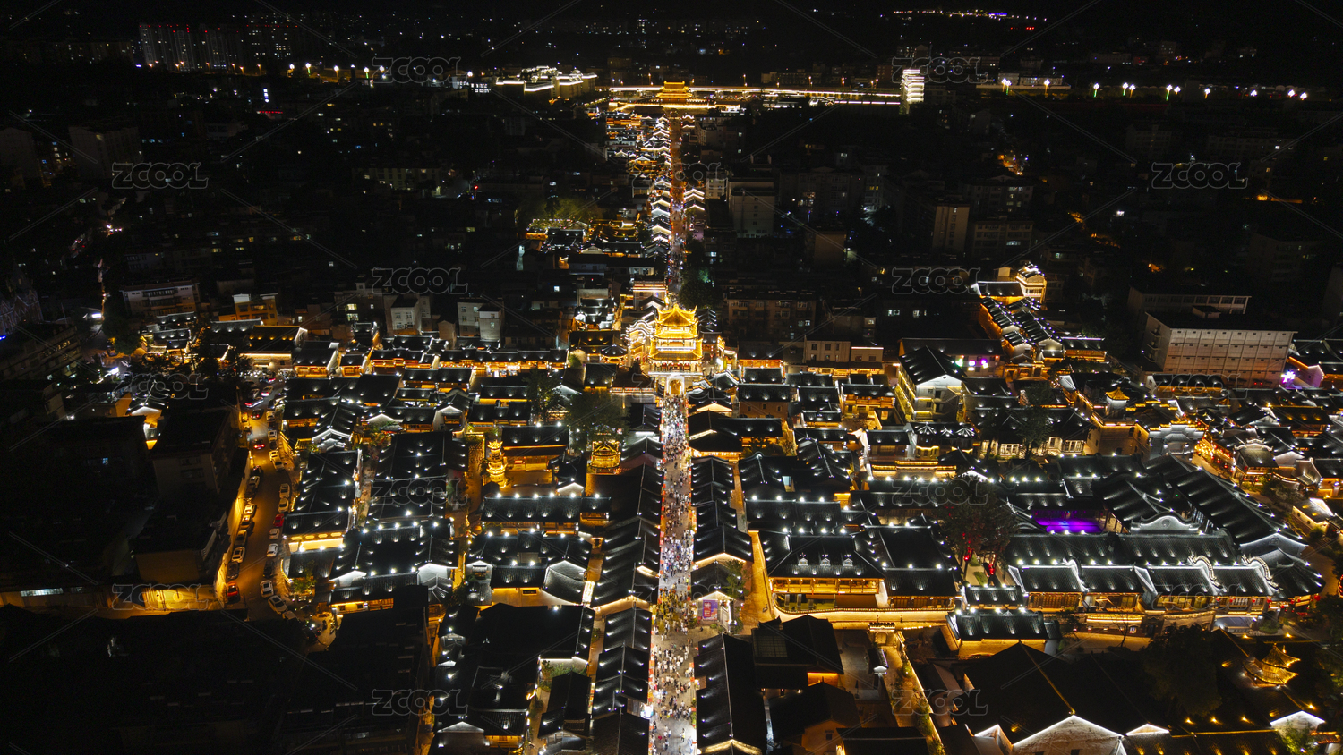 中国安徽徽州古城夜景航拍