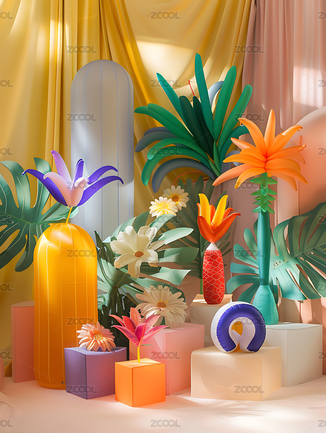 夏日,植物,梦幻,3d,展台,电商,清新,柔和