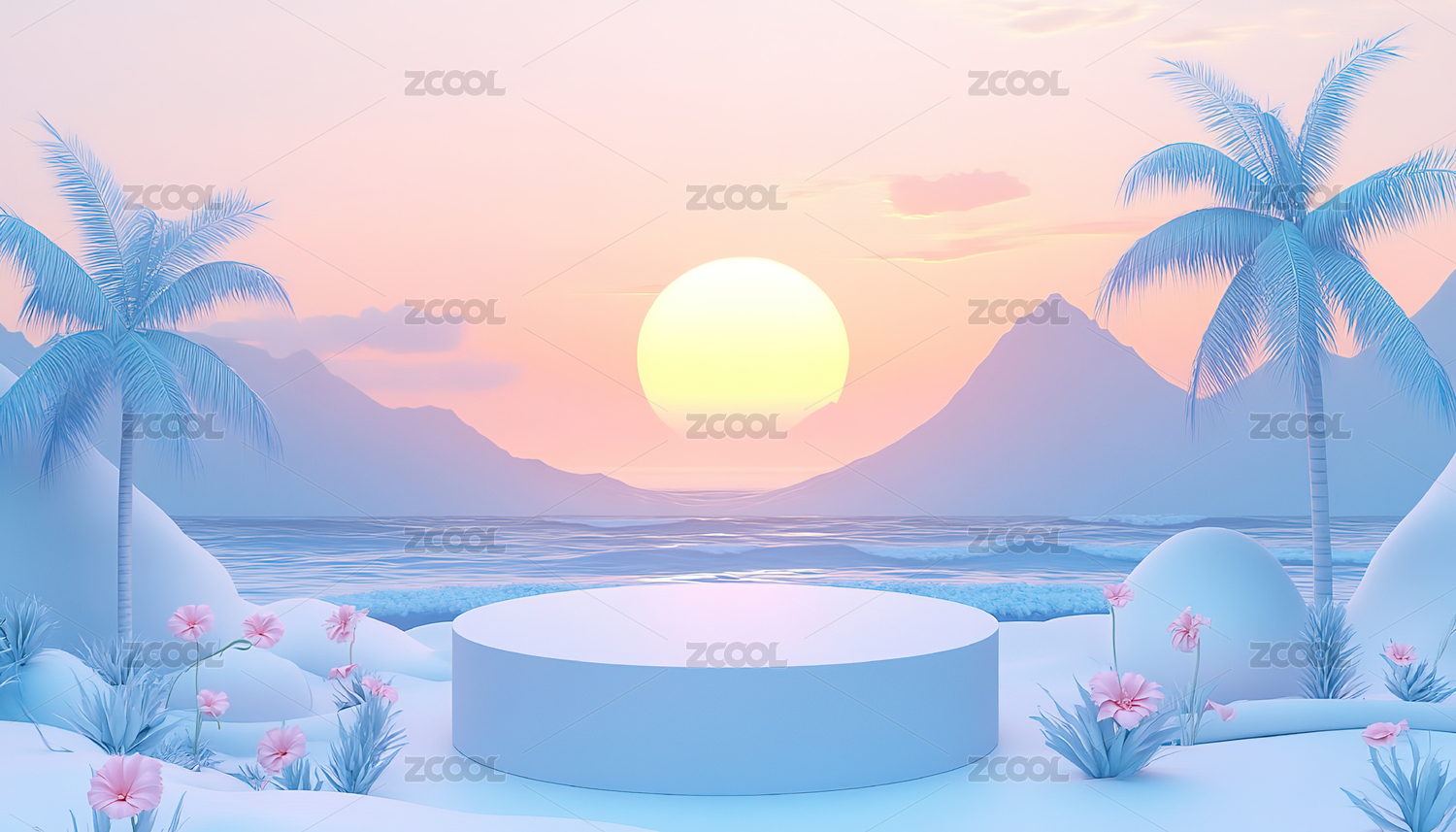 清透,梦幻,3d,展台,电商,清新,渐变,底座,夏天,海滩