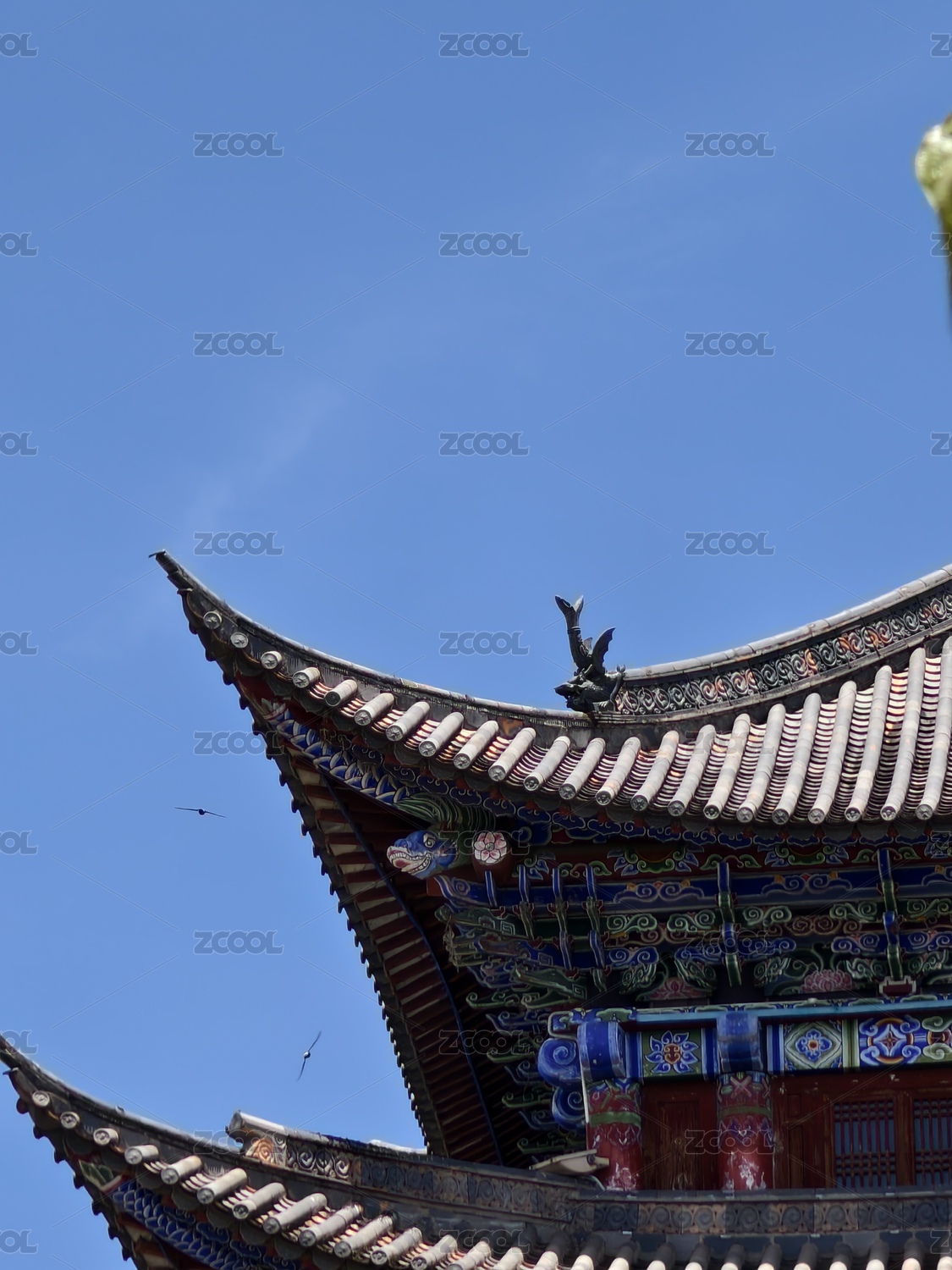 大理古城古建飞檐映蓝天