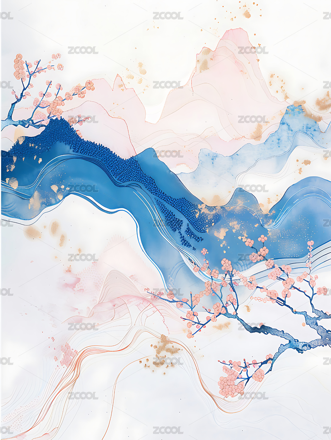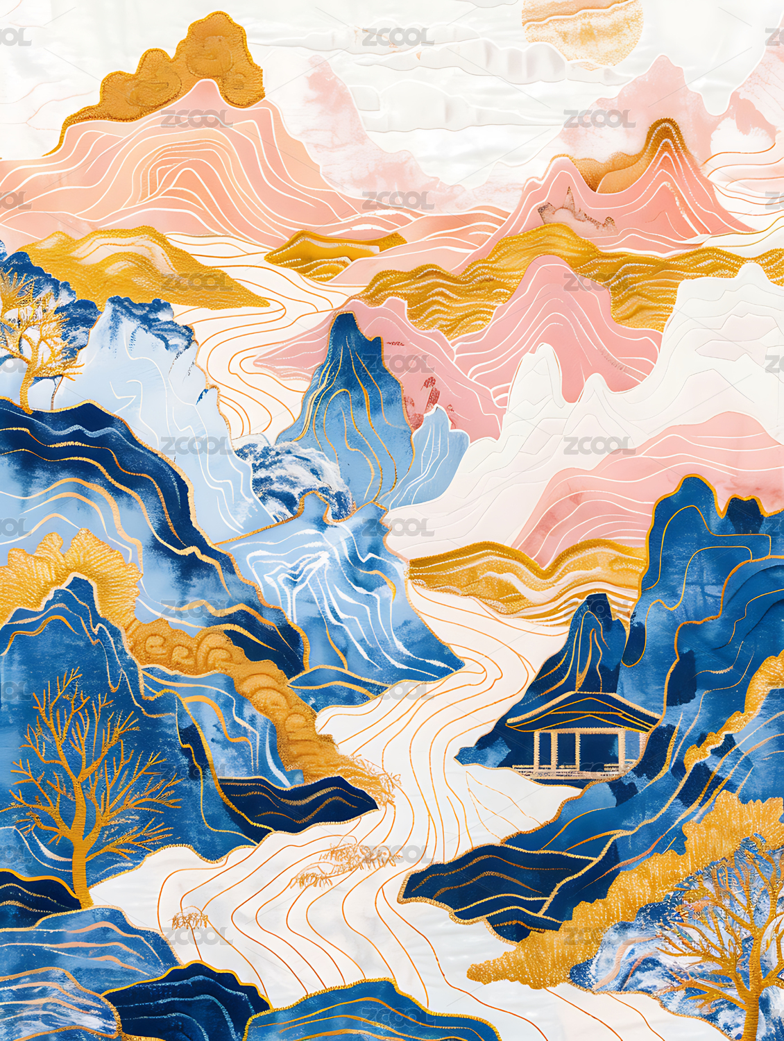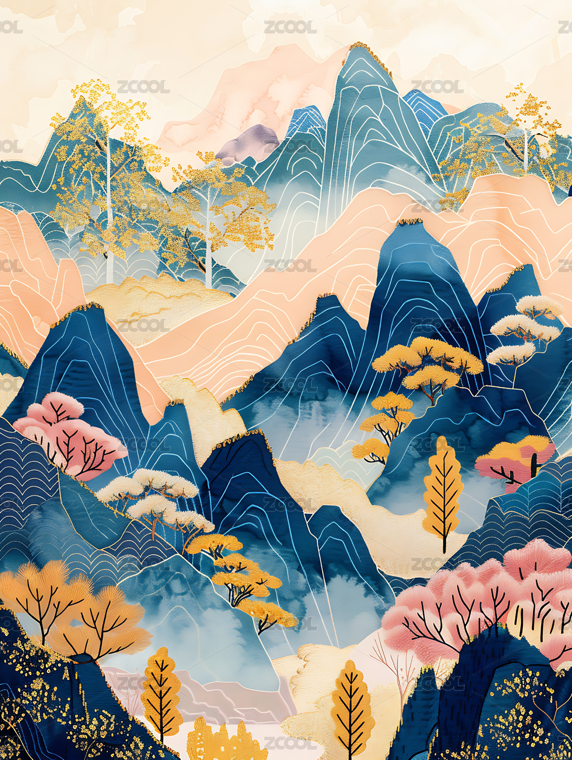 国风,插画,山水,水墨,扁平,国潮风,中式,传统,新中式,中国