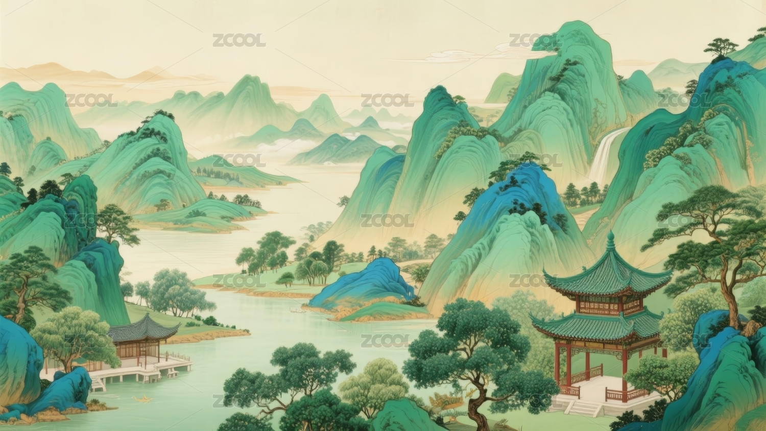 青绿山水国风绘画场景
