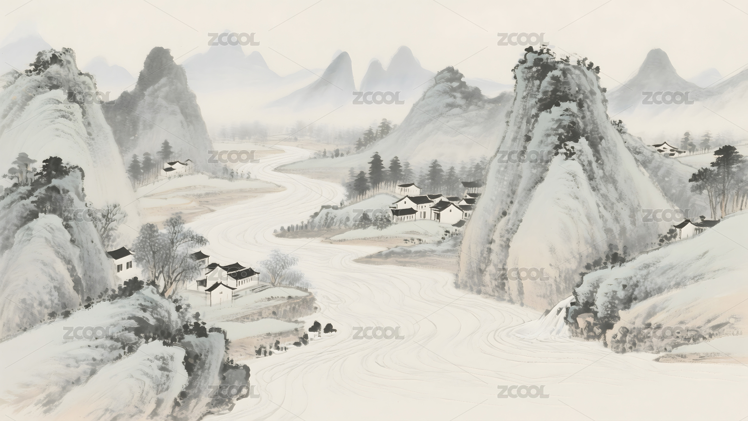 水墨山水间的宁静致远