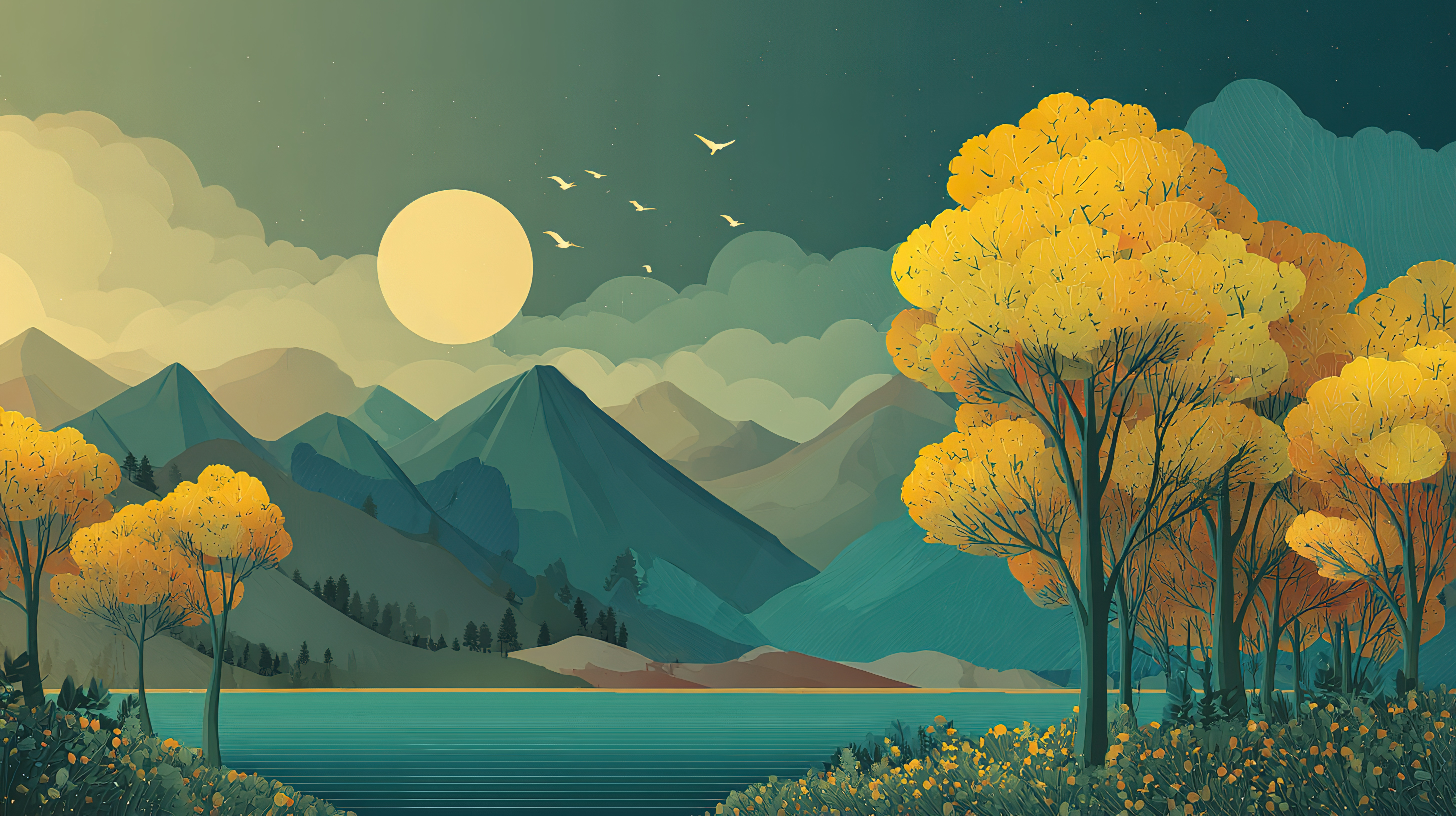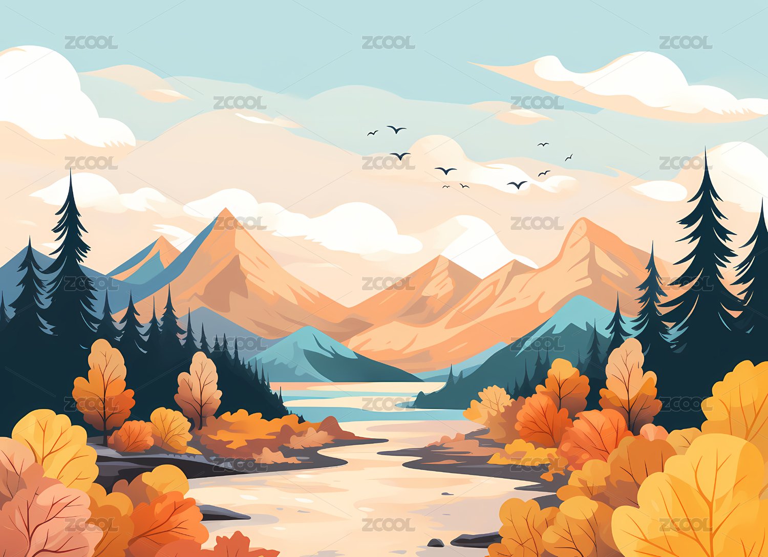 秋天秋季立秋秋分自然户外风景卡通漫画插画