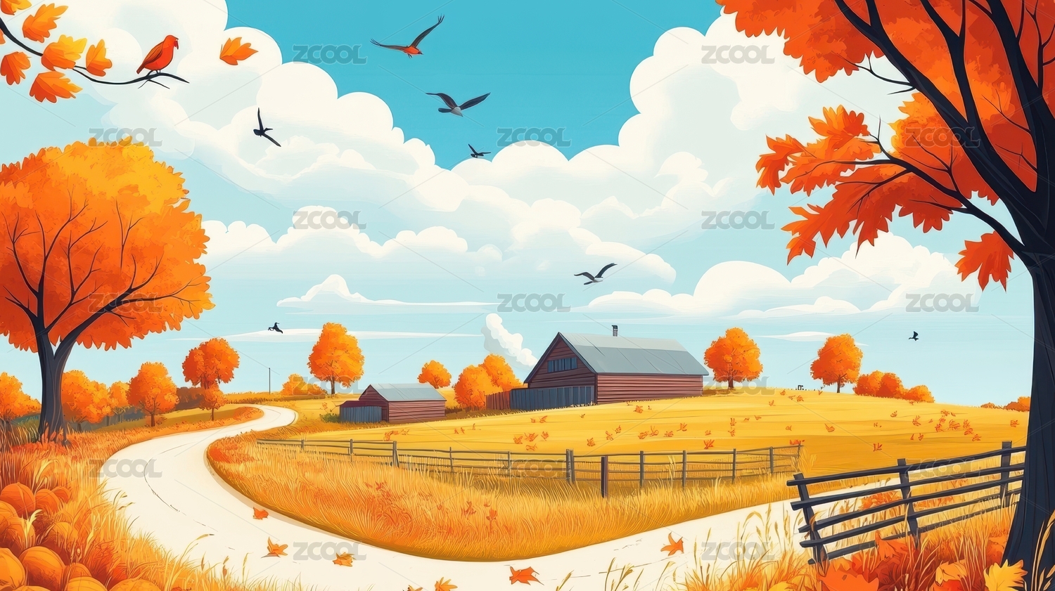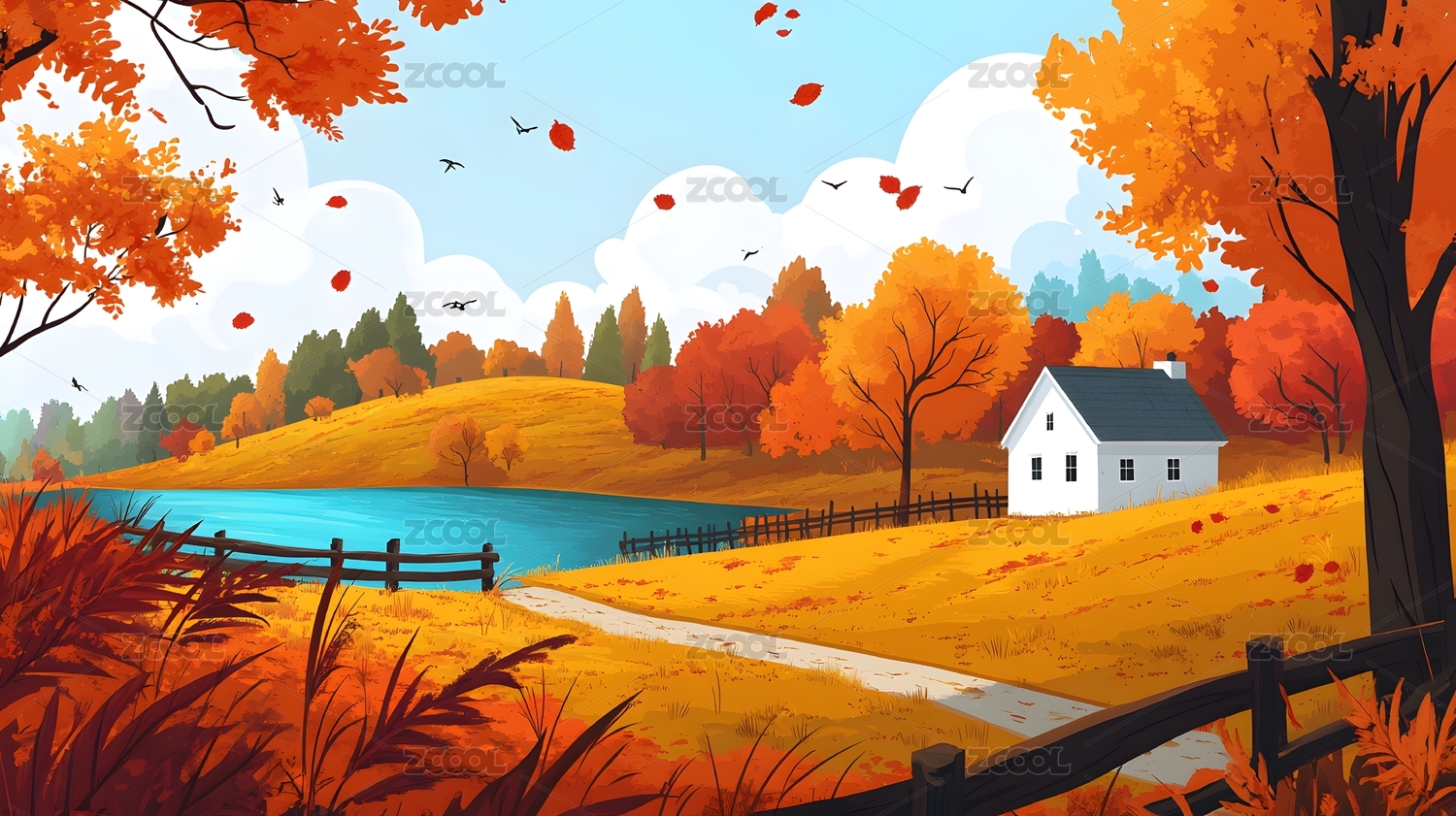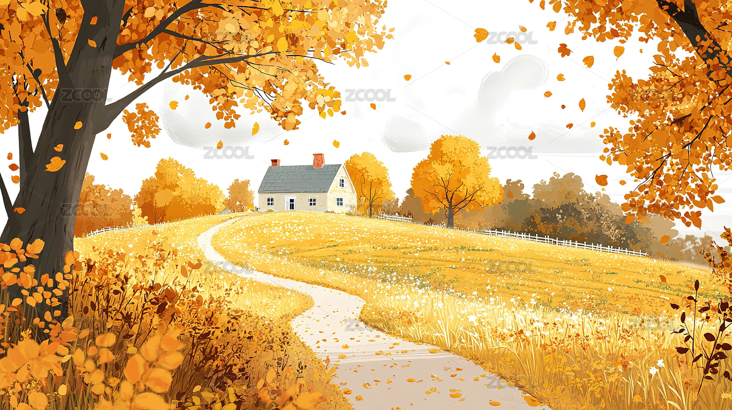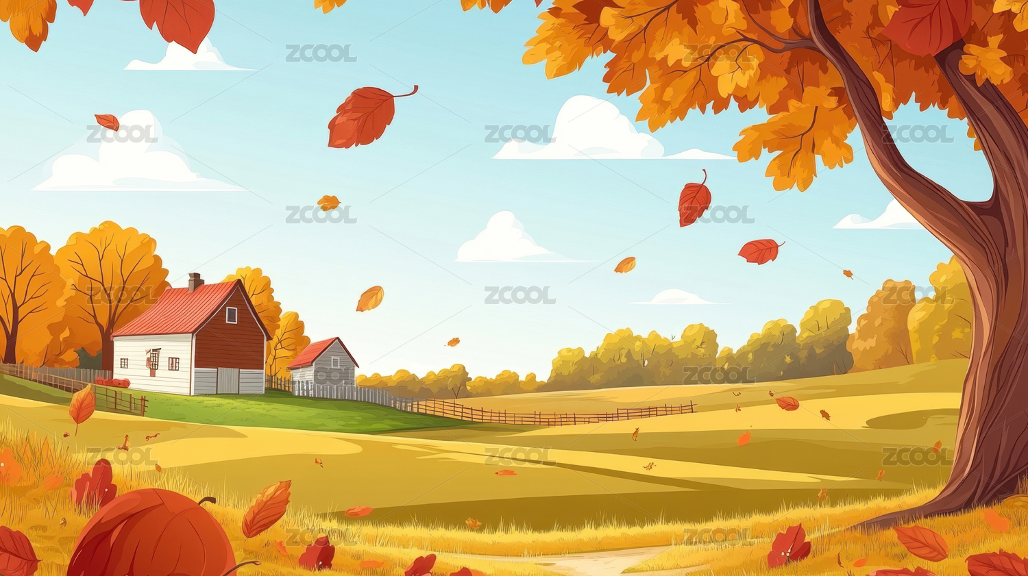 秋天秋季立秋秋分自然户外风景卡通漫画插画