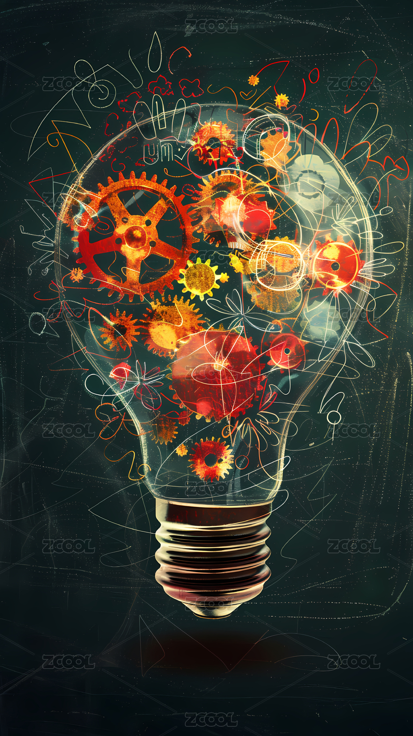 创意,灯泡,彩色,齿轮,发光,创新,灵感,想法,照明,知识