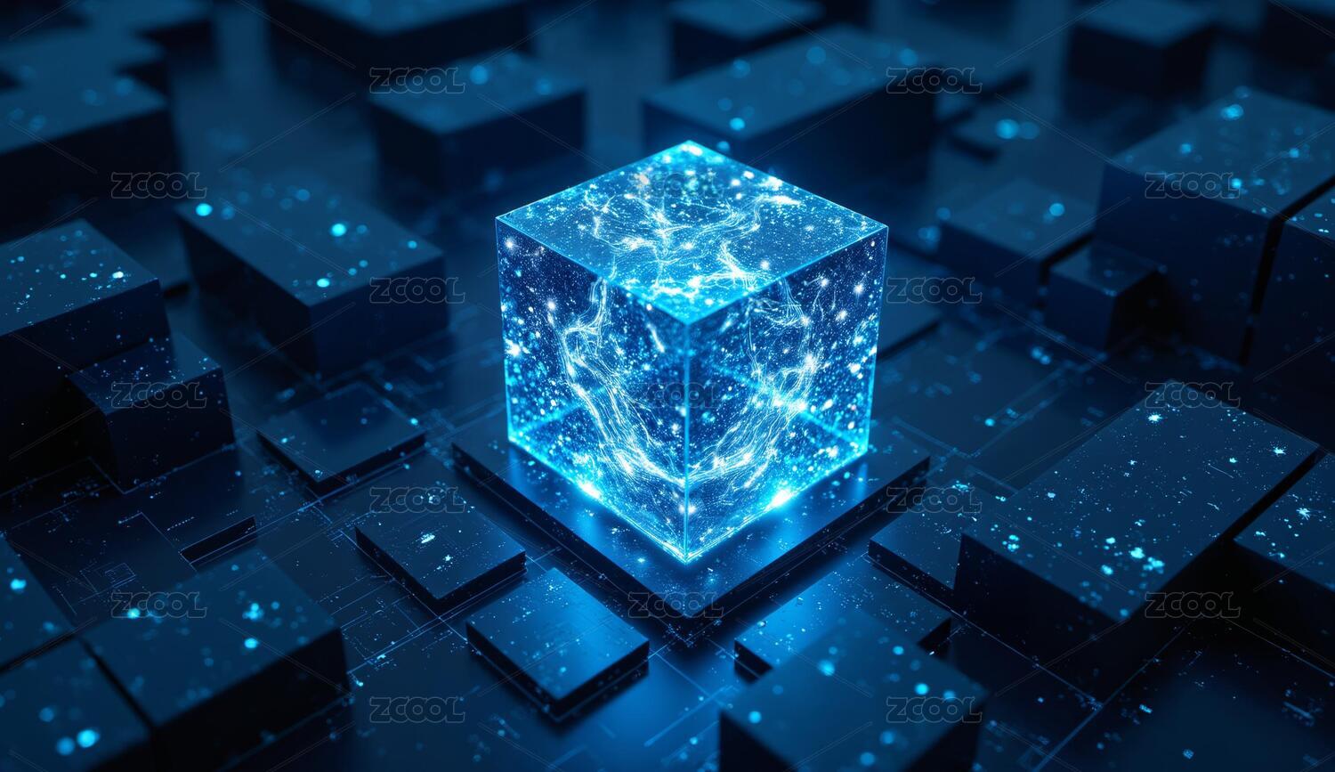 科技感十足的蓝色立方体