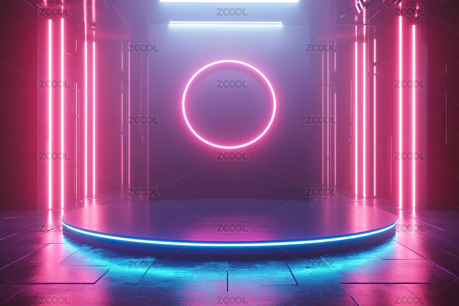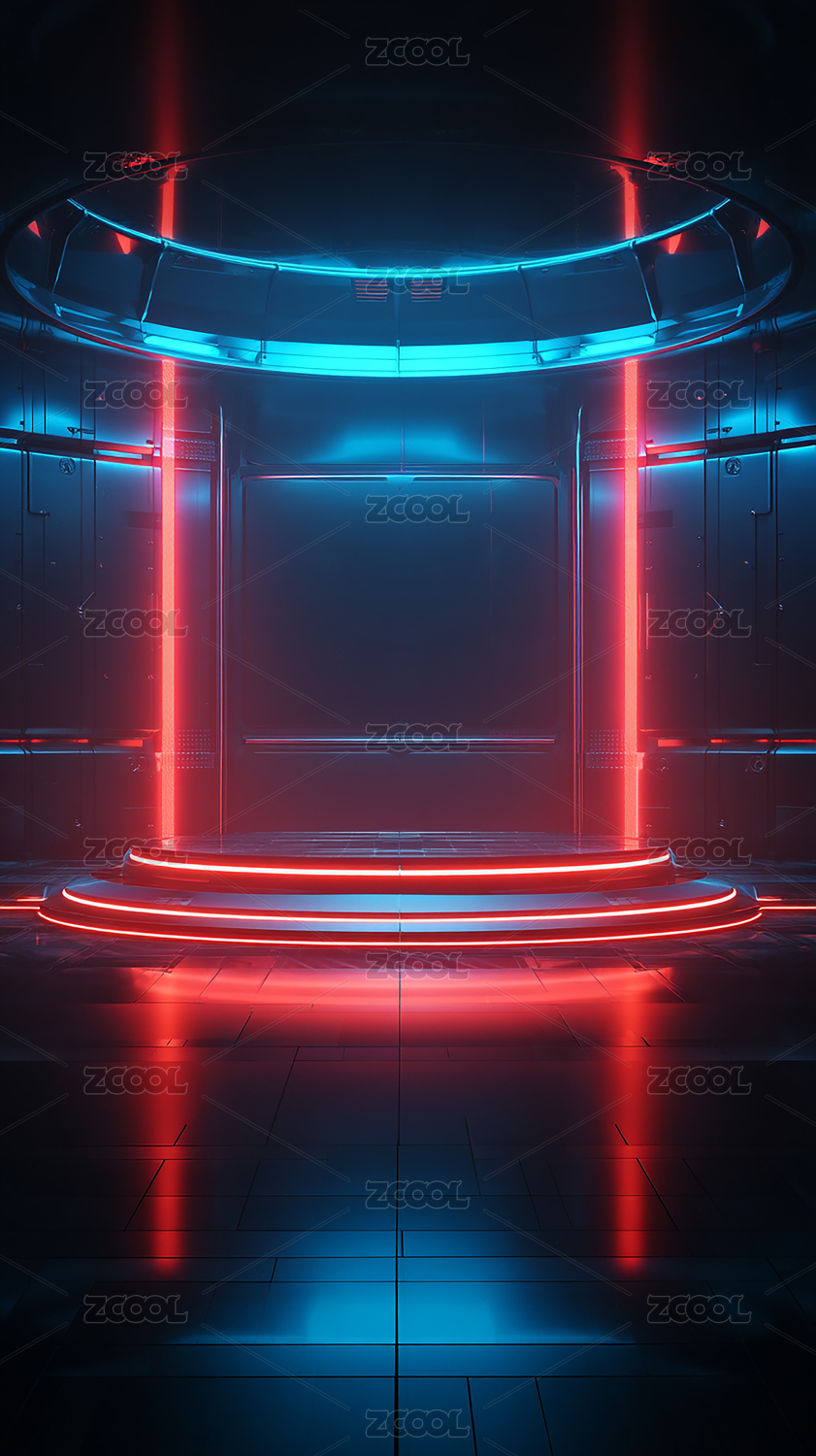蓝色,发光,未来,科技,空间,红色,霓虹,光环,讲台,底座