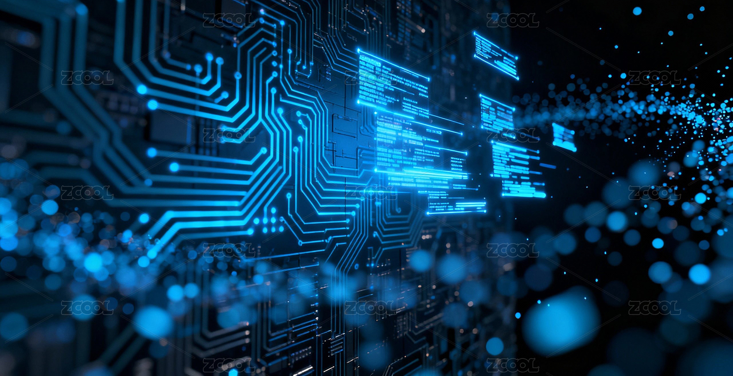 蓝色电路板与数据流动态效果
