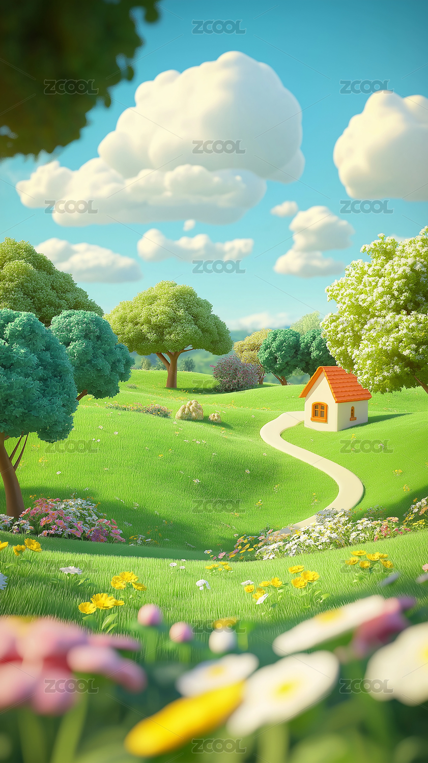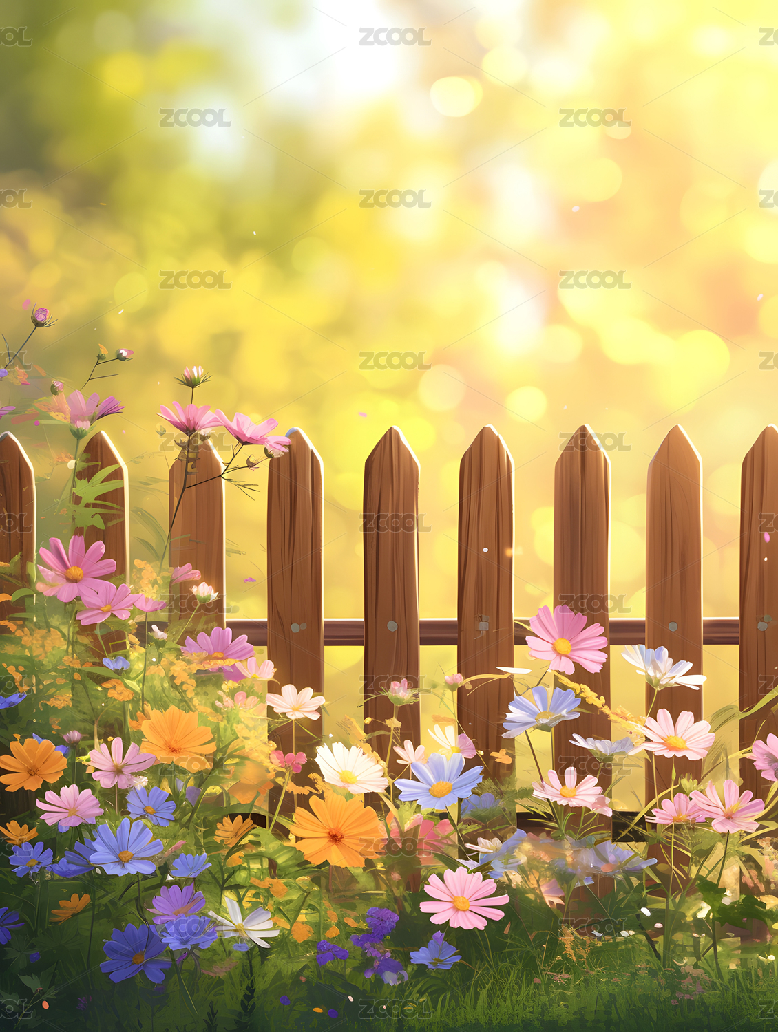 尖栅栏,户外,花园,草地,风景,绿色,卡通,插画,白昼,草